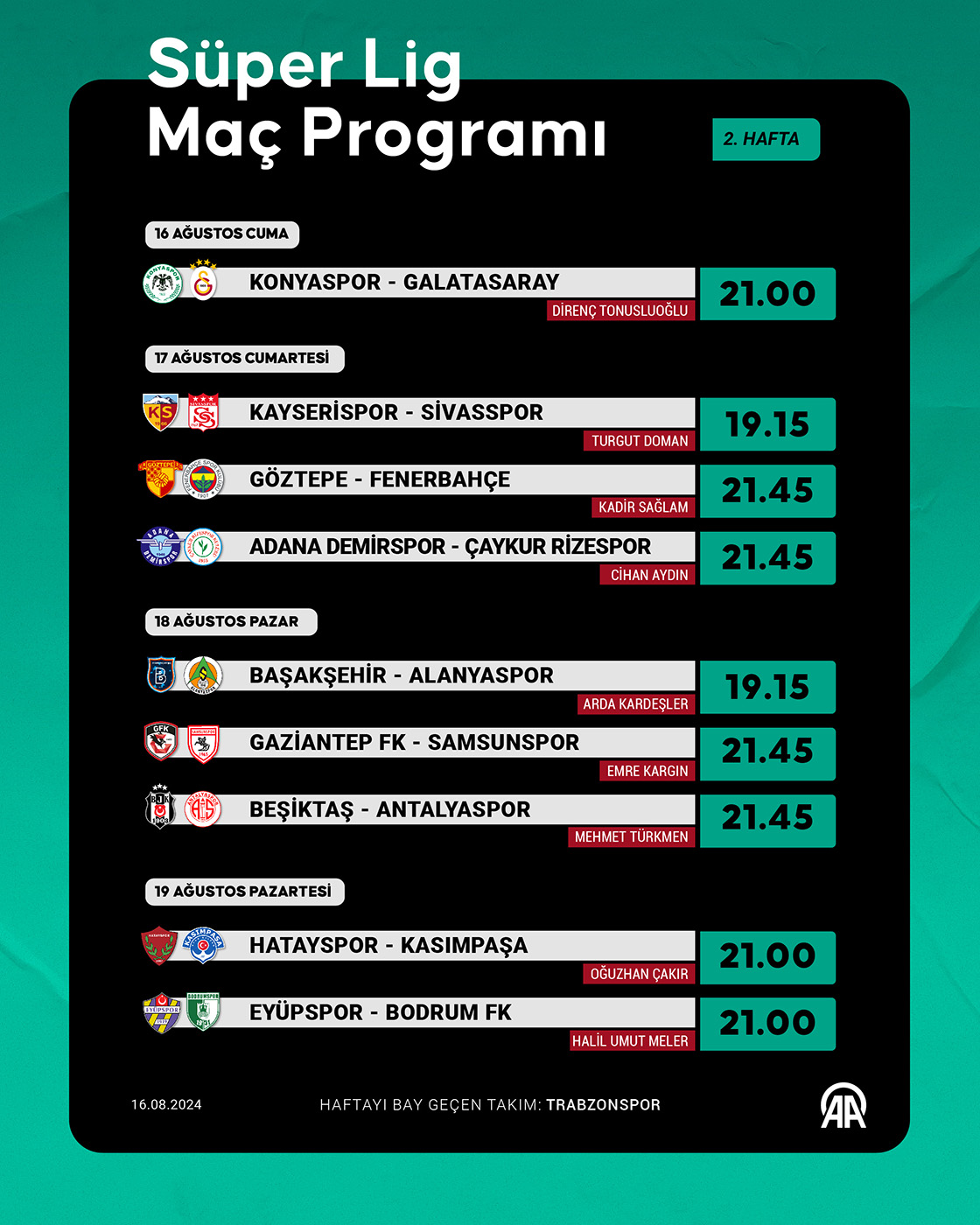 Trendyol Süper Lig'in 2.haftası Konyaspor-Galatasaray maçı ile başlayacak. (Grafik: Kemal Delikmen/AA)