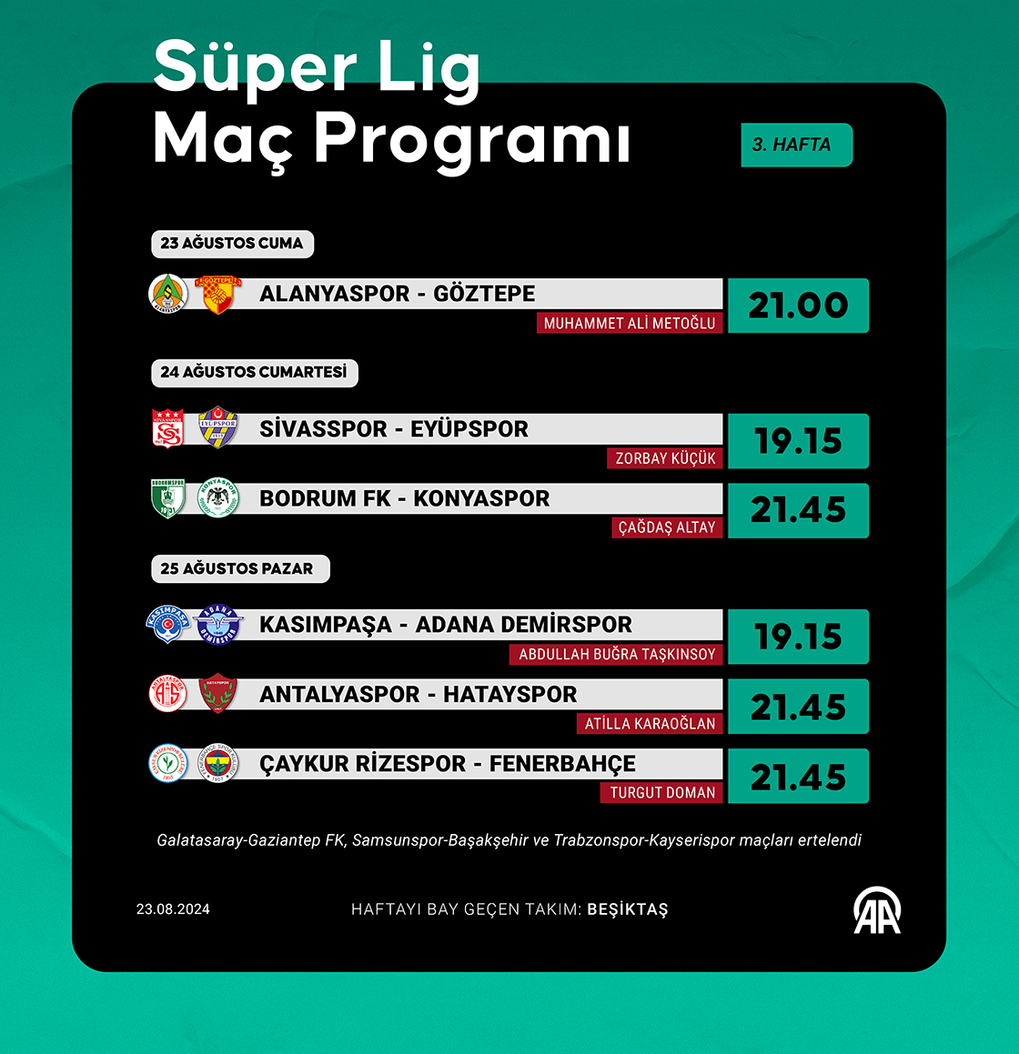 Trendyol Süper Lig'in 3.haftası Alanyaspor-Göztepe maçıyla başlayacak.