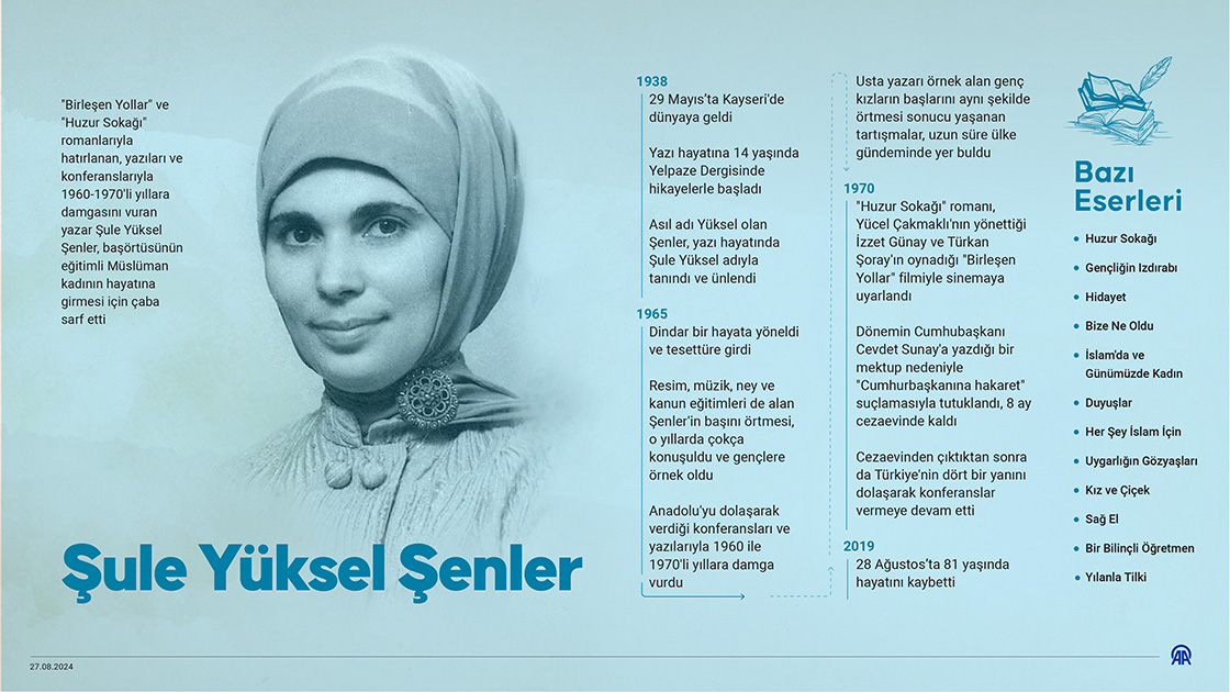 'Birleşen Yollar' ve 'Huzur Sokağı' romanlarıyla hatırlanan, yazıları ve konferanslarıyla 1960-1970'li yıllara damgasını vuran yazar Şule Yüksel Şenler'in vefatının üzerinden 5 yıl geçti. (Grafik: Yasin Demirci/AA)