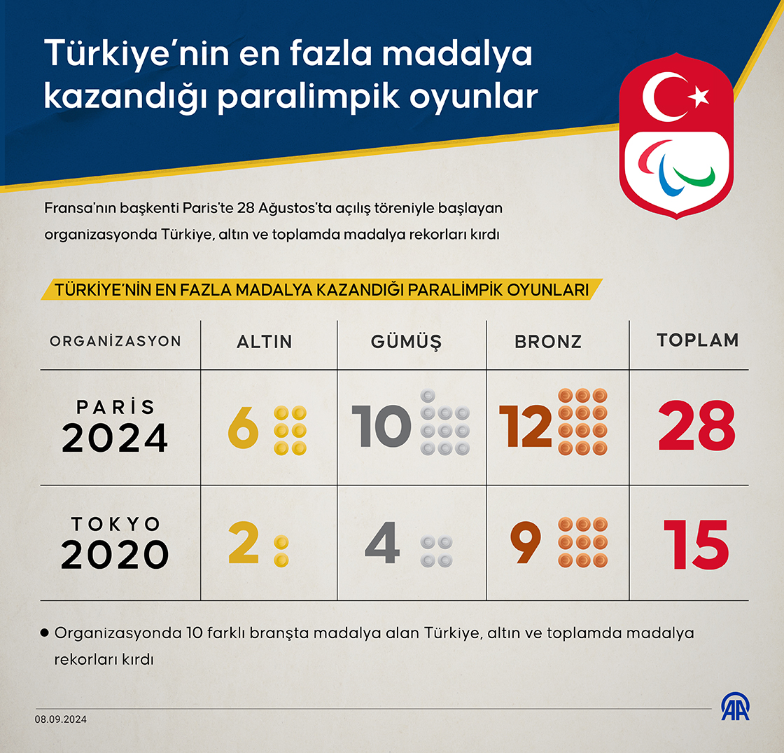 Türkiye, Paris 2024 Paralimpik Oyunları'nı 28 madalya alarak rekorla tamamladı