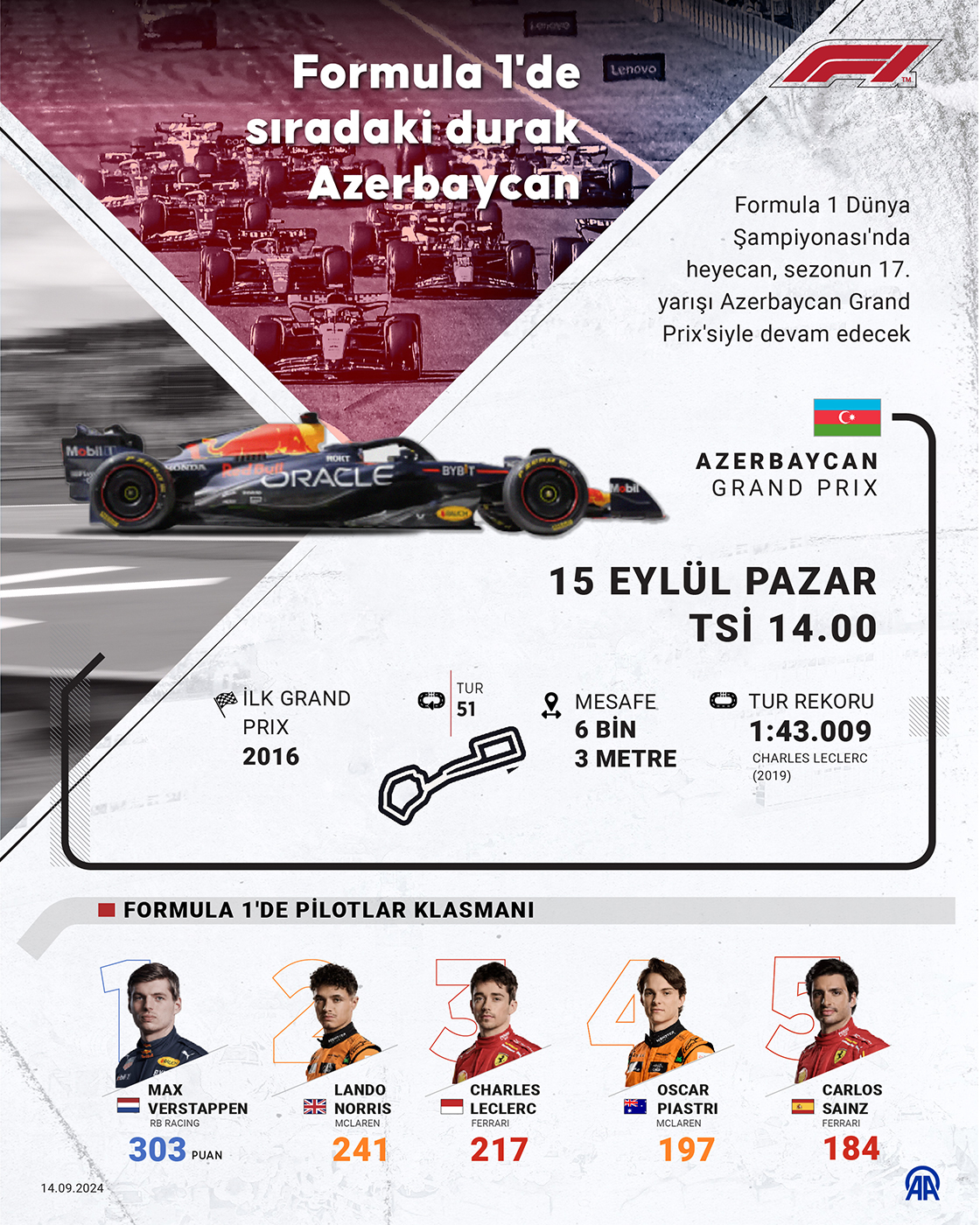 1 Dünya Şampiyonası'nda heyecan, sezonun 17. yarışı Azerbaycan Grand Prix'siyle devam edecek. (Grafik: Kemal Delikmen/AA)