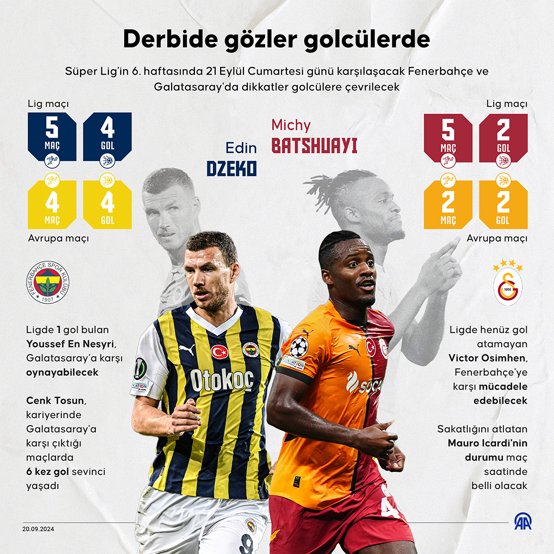 Süper Lig'in 6. haftasında 21 Eylül Cumartesi günü karşılaşacak Fenerbahçe ve Galatasaray'da dikkatler golcülere çevrilecek.