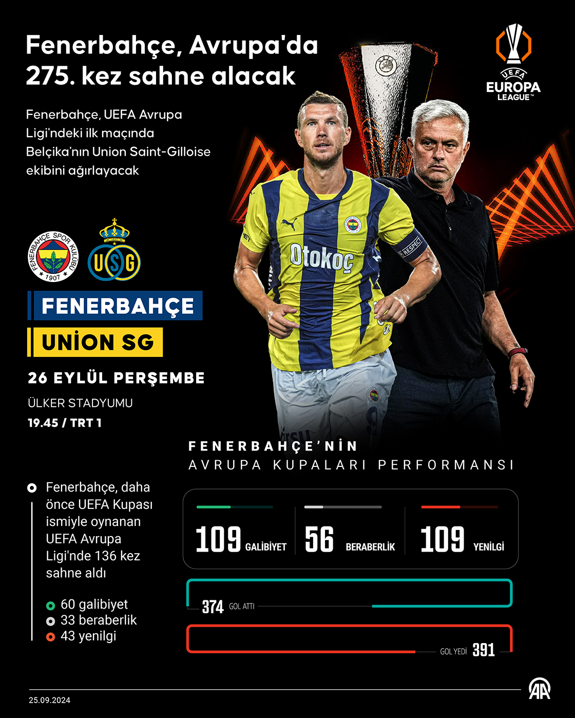 Fenerbahçe, UEFA Avrupa Ligi'ndeki ilk maçında Belçika'nın Union Saint-Gilloise ekibini ağırlayacak. (Grafik: Muhammed Ali Yiğit/AA)