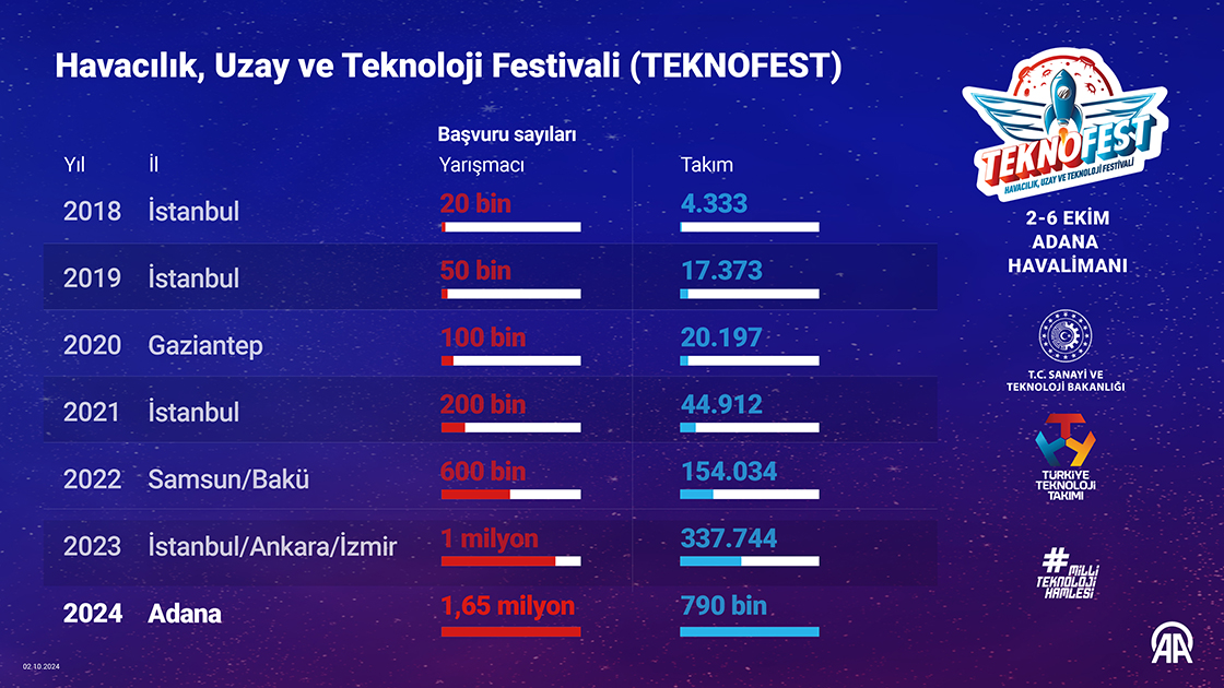 Festival kapsamında düzenlenen 50 yarışmaya, 790 bin takım ve 1 milyon 650 binden fazla yarışmacı başvurdu. (Grafik: Yasin Demirci/AA)