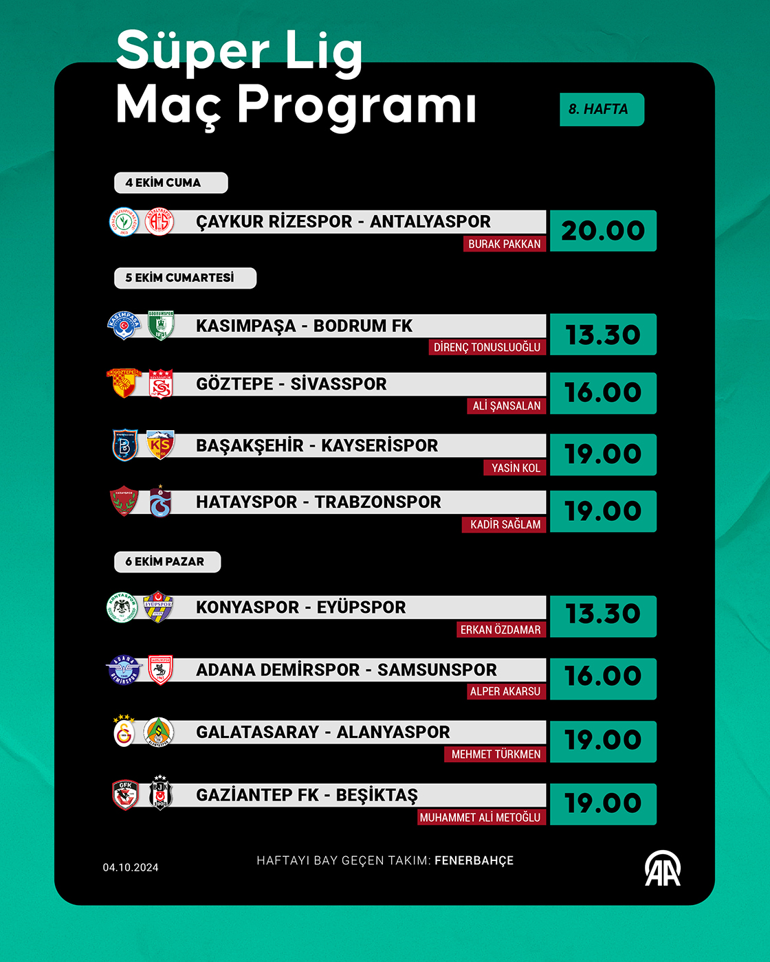 Trendyol Süper Lig'de 8. hafta Çaykur Rizespor ile Antalyaspor arasında oynanacak maç ile başlayacak. (Grafik: Kemal Delikmen/AA)