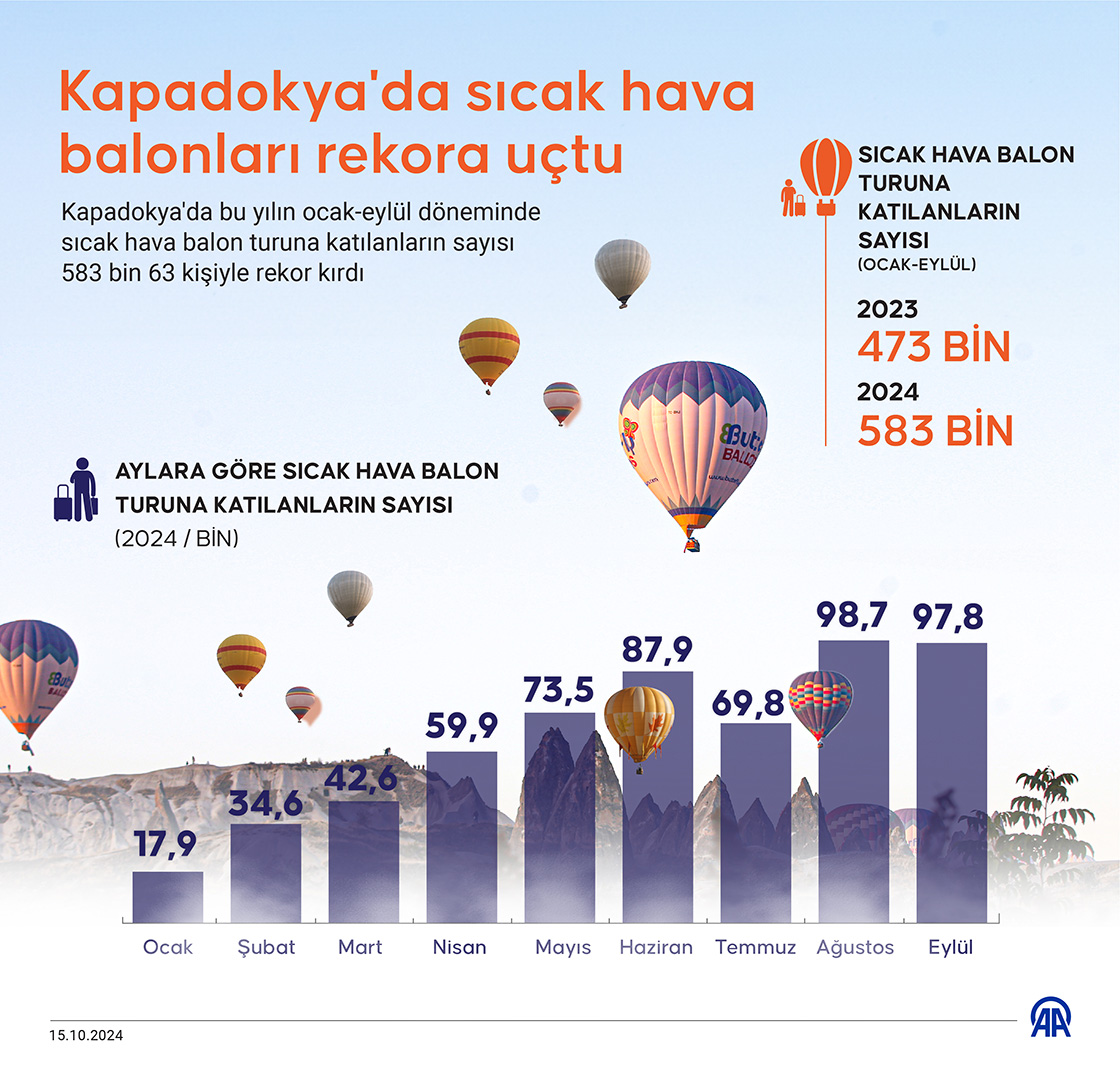 Kapadokya'da sıcak hava balonları rekora uçtu