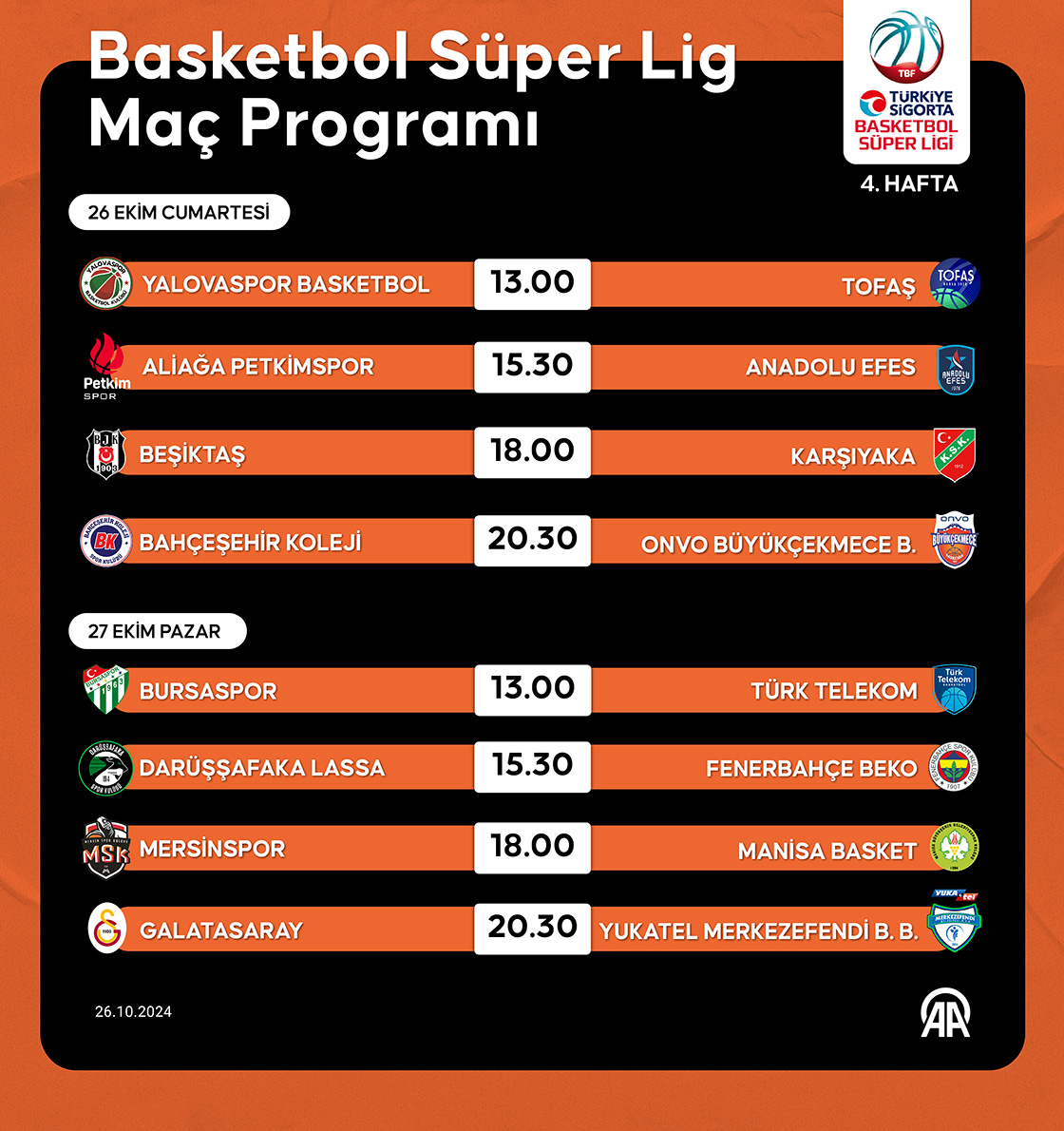Türkiye Sigorta Basketbol Süper Ligi'nde dördüncü hafta maçları oynanacak. (Grafik: Muhammed Ali Yiğit/AA)