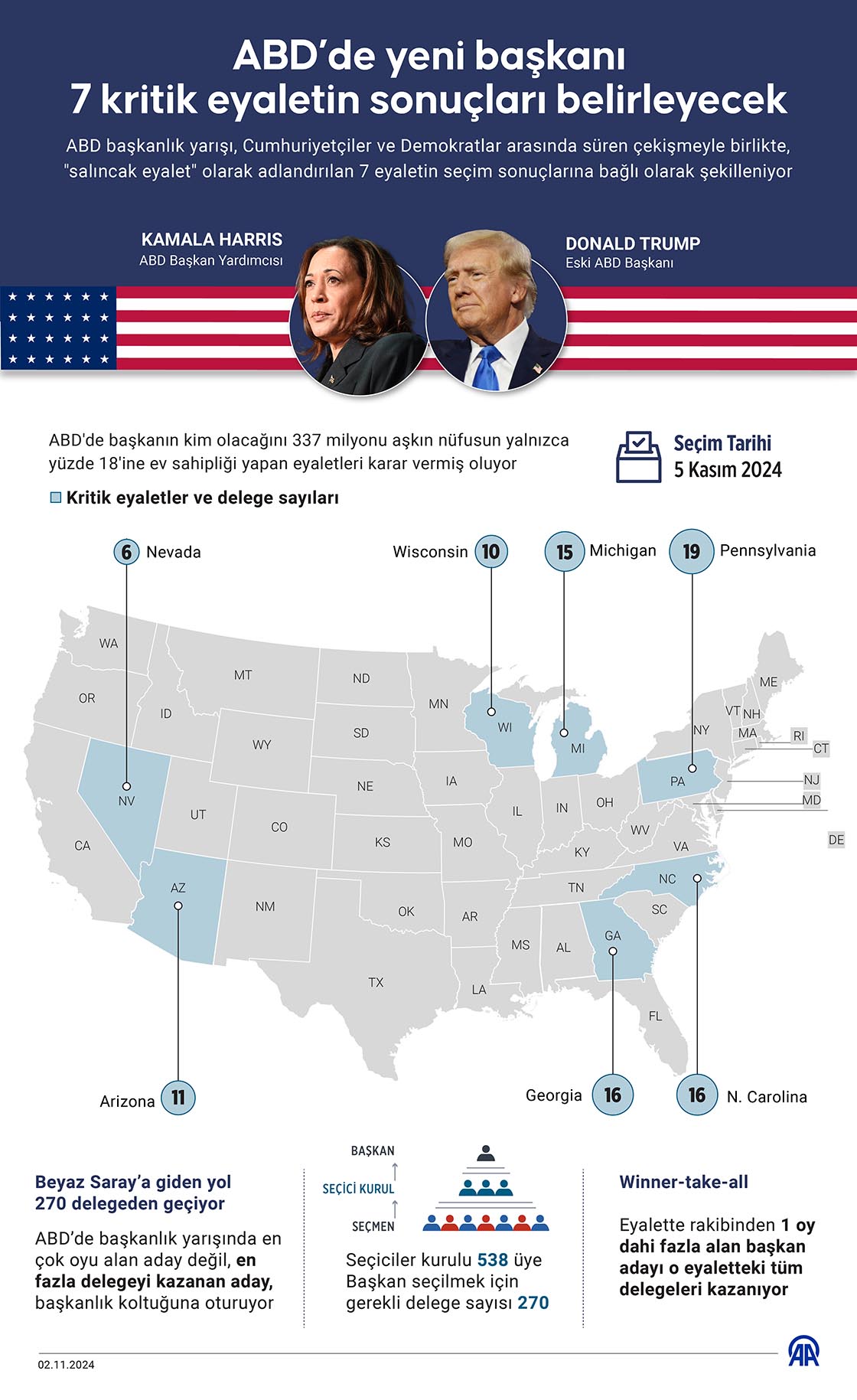ABD’de yeni başkanı 7 kritik eyaletin sonuçları belirleyecek