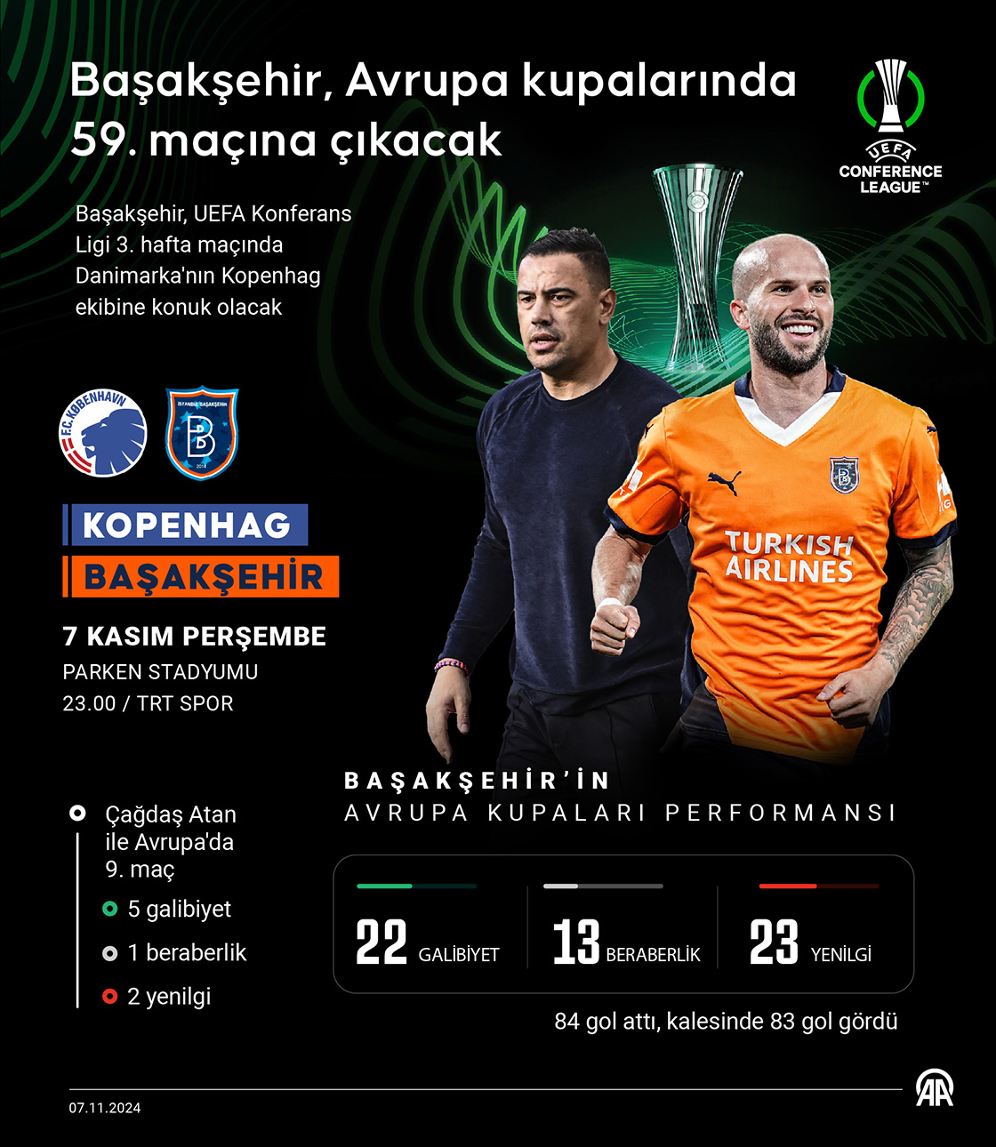 Başakşehir, UEFA Konferans Ligi 3. hafta maçında Danimarka'nın Kopenhag ekibine konuk olacak. (Grafik: Muhammed Ali Yiğit/AA)