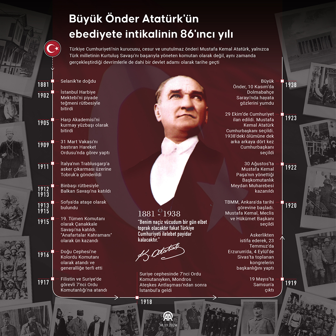 Büyük Önder Atatürk'ün ebediyete intikalinin üzerinden 86 yıl geçti