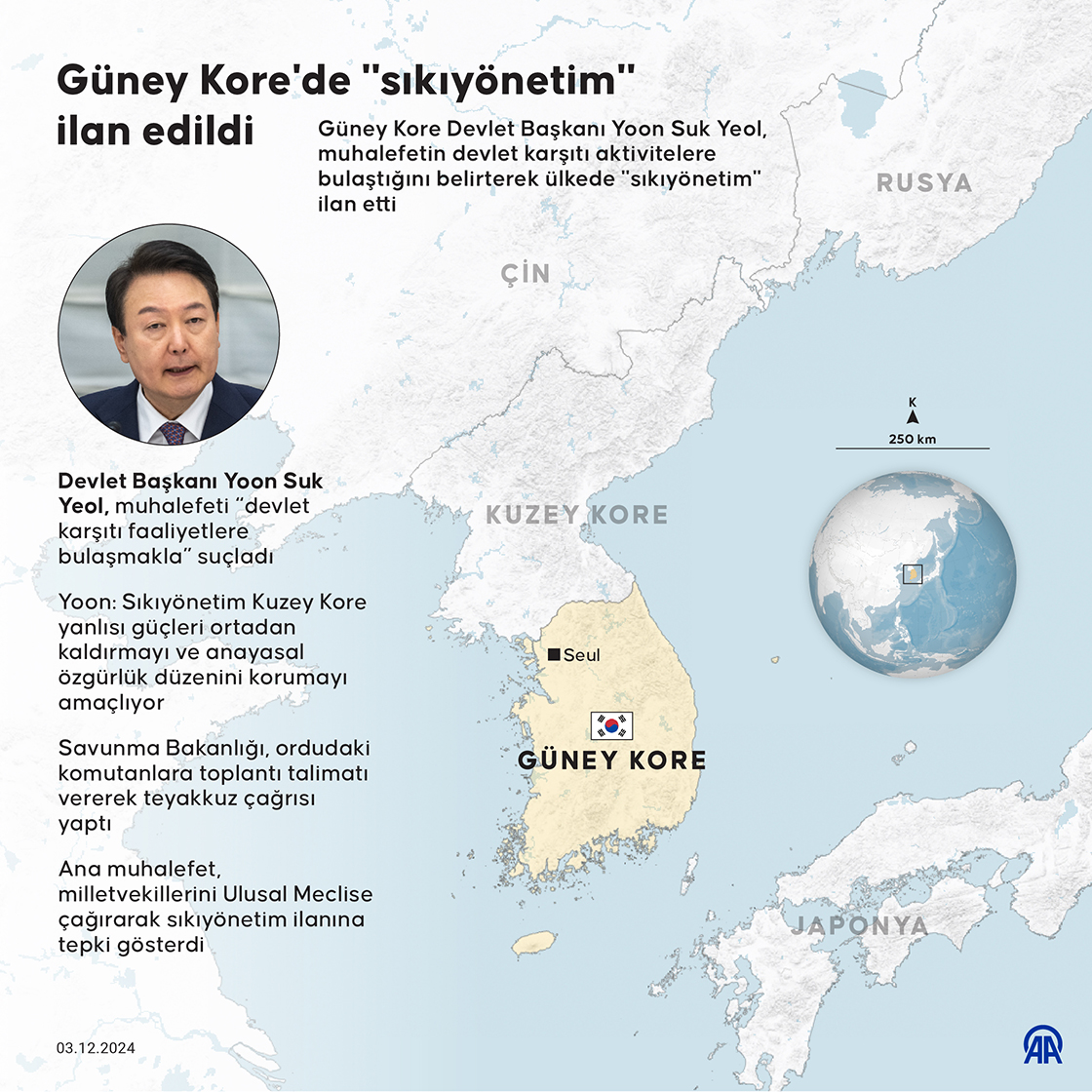 Güney Kore Devlet Başkanı Yoon Suk Yeol, muhalefetin devlet karşıtı aktivitelere bulaştığını belirterek ülkede "sıkıyönetim" ilan etti.
