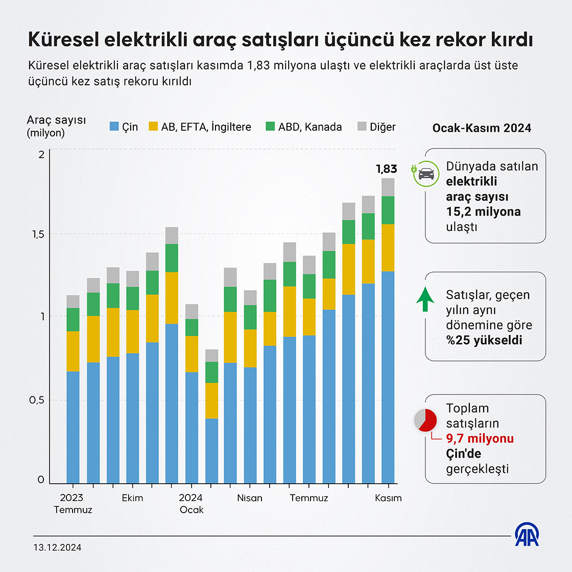 Küresel elektrikli araç satışları üçüncü kez rekor kırdı