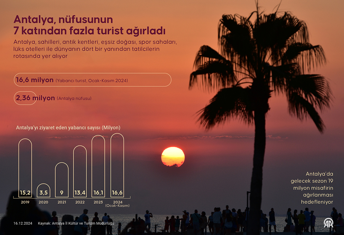 Antalya, nüfusunun 7 katından fazla turist ağırladı