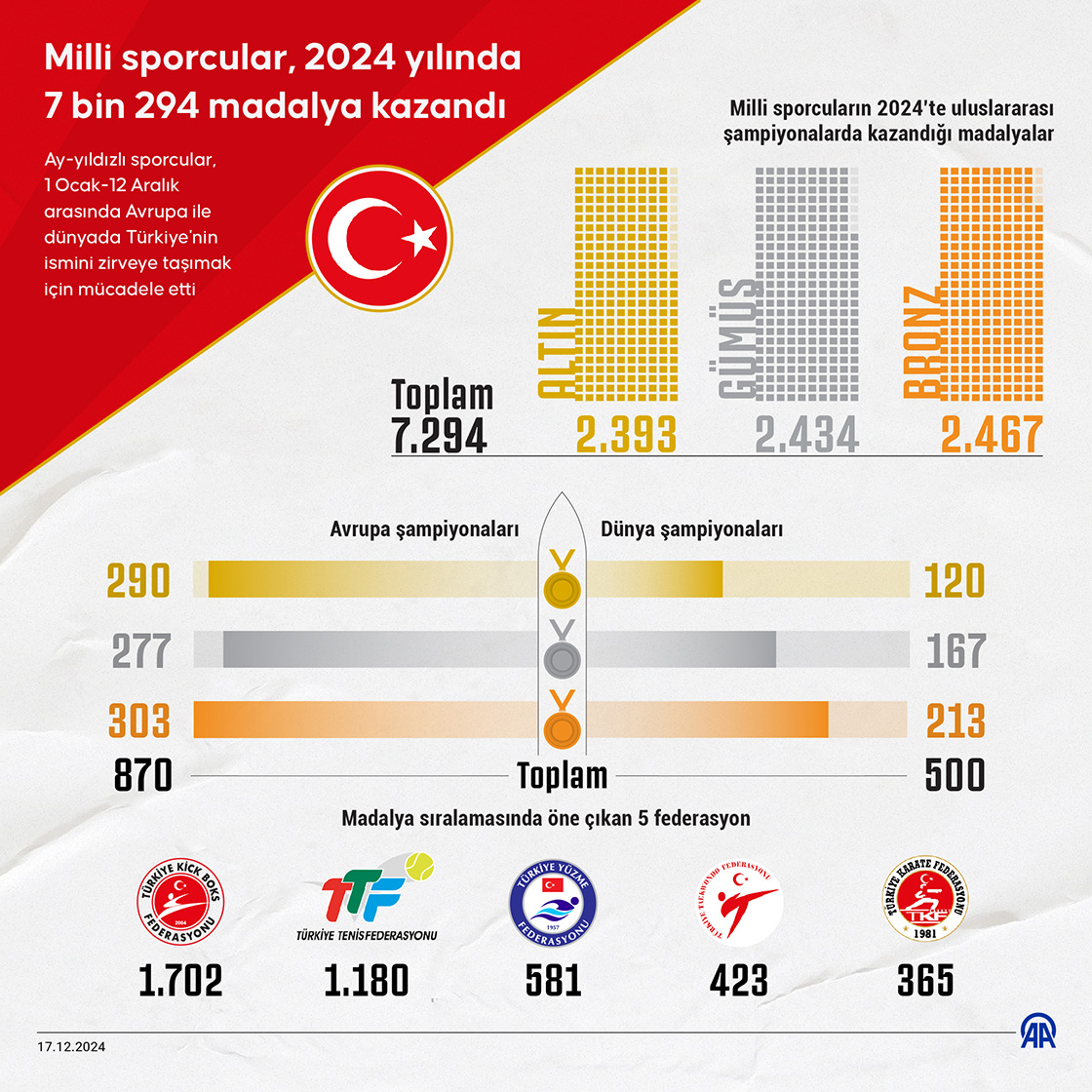 Milli sporcular, 2024 yılında 7 bin 294 madalya kazandı