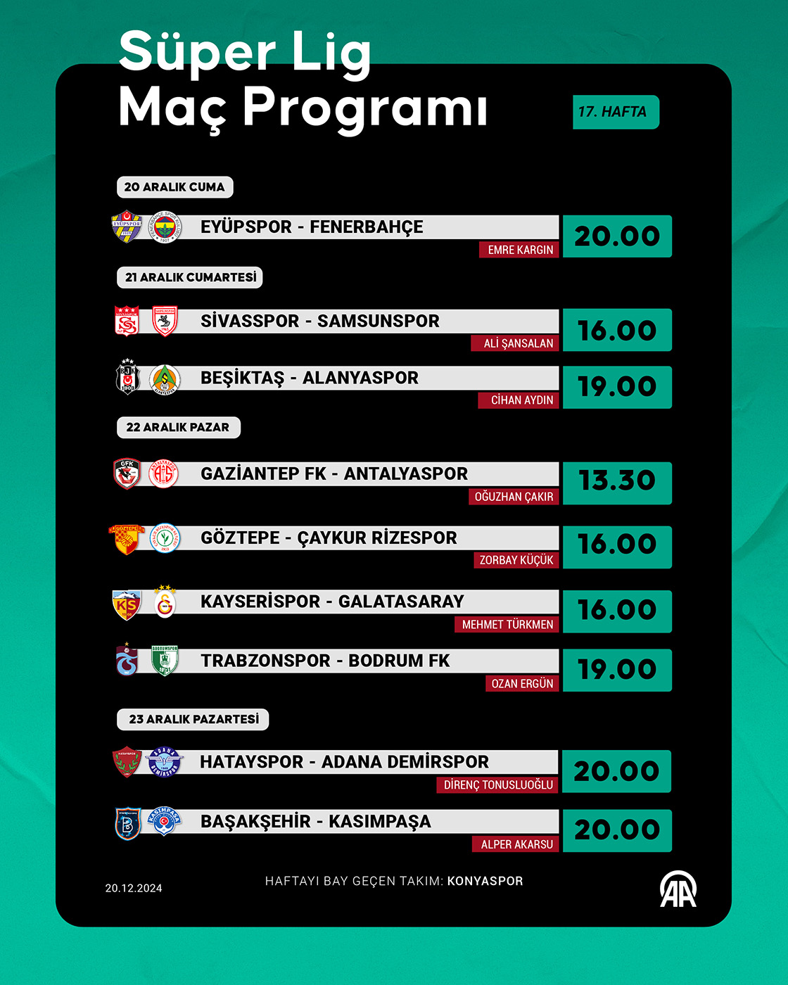 Trendyol Süper Lig'de 17. hafta Eyüpspor ile Fenerbahçe arasında oynanacak maç ile başlayacak. (Grafik: Kemal Delikmen/AA)