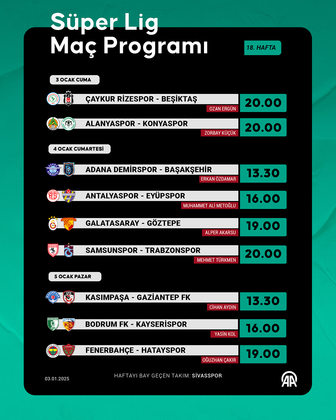Trendyol Süper Lig'de 18. hafta iki maç ile başlayacak. (Grafik: Kemal Delikmen/AA)
