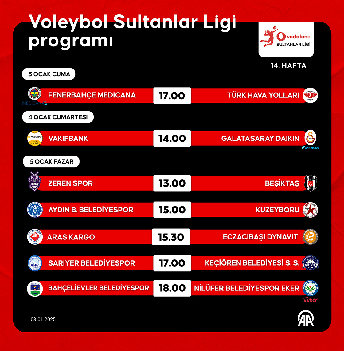Voleybolda Vodafone Sultanlar Ligi'nde 14. hafta karşılaşmaları yapılacak. (Grafik: Muhammet Zeyd Karaaslan/AA)