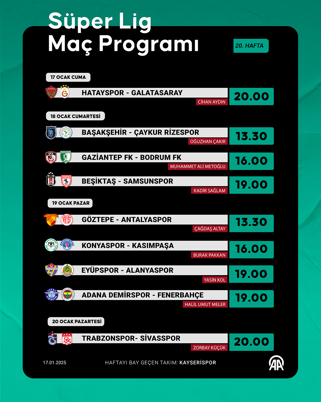 Süper Lig 20. hafta programı. (Grafik: Muhammet Zeyd Karaaslan/AA)