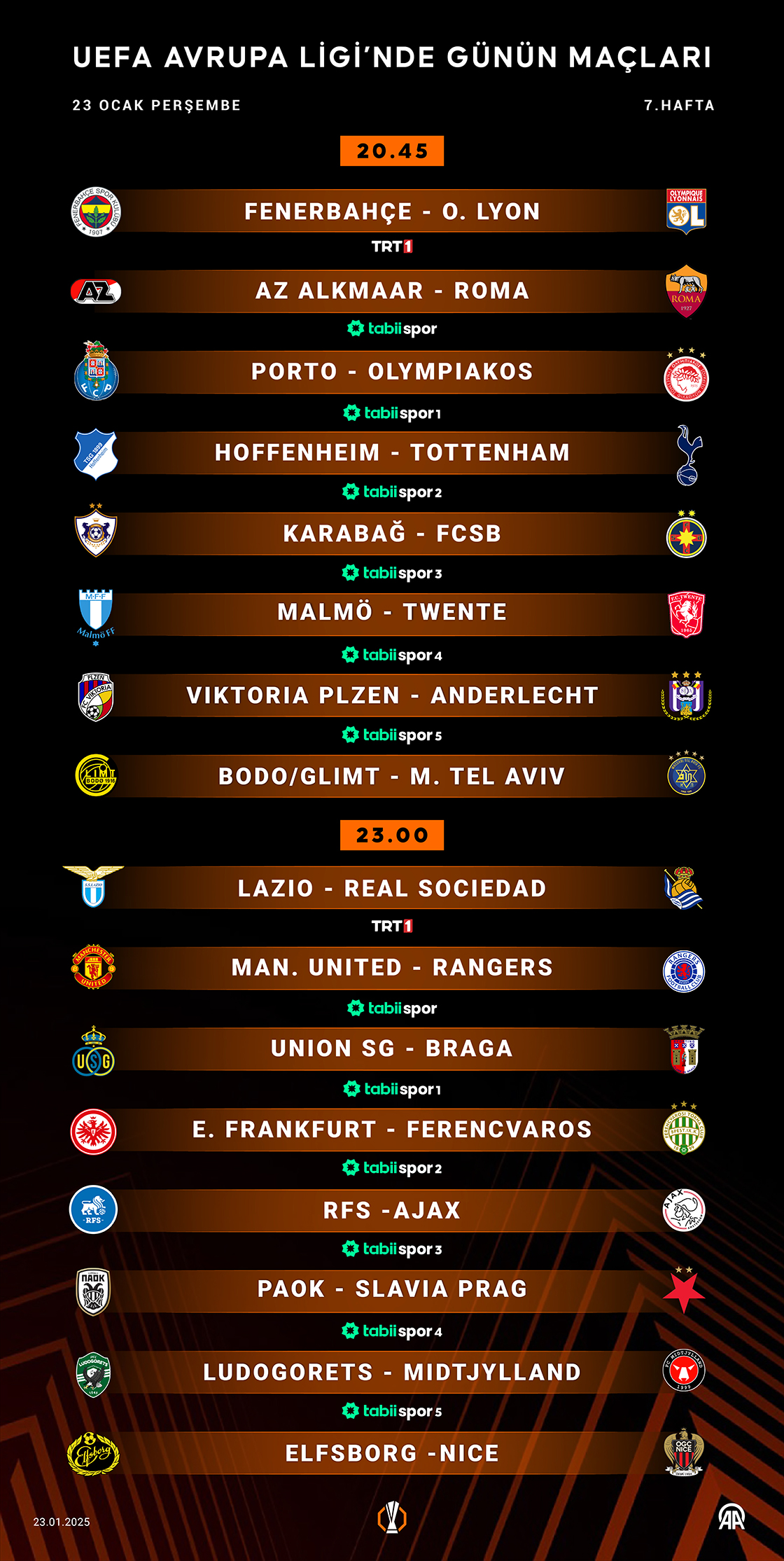 UEFA Avrupa Ligi’nde günün maçları. (Grafik: Muhammet Zeyd Karaaslan/AA)