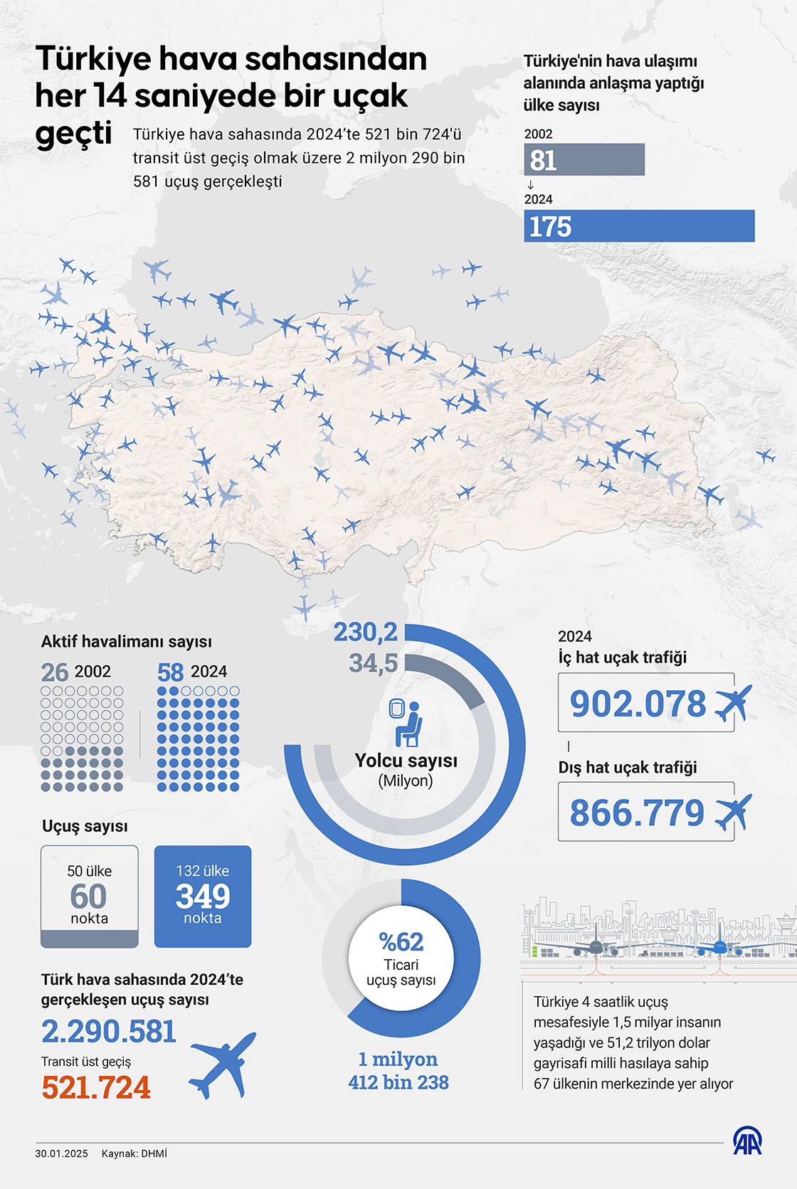 Türkiye hava sahasından her 14 saniyede bir uçak geçti
