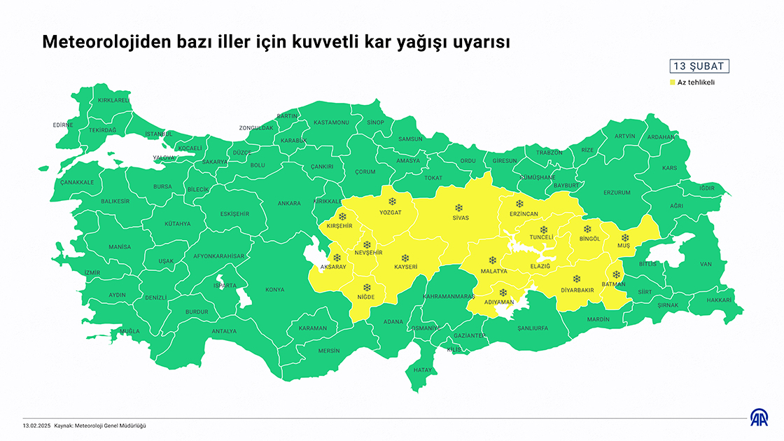 Meteorolojiden bazı iller için kuvvetli kar yağışı uyarısı. (Grafik: Omar Zaghloul/AA)