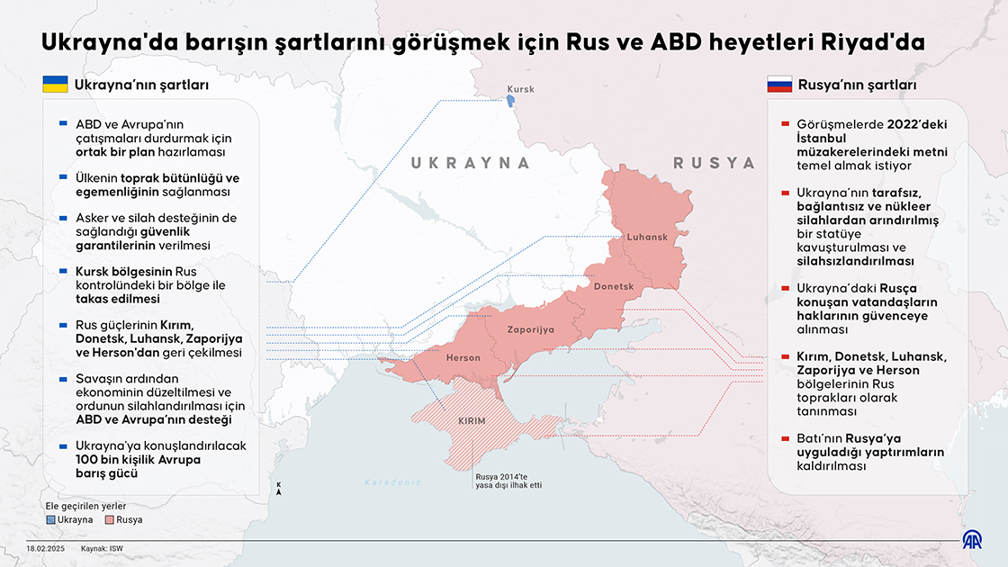 Rusya ve ABD heyetleri arasında yapılacak görüşmede, Ukrayna'daki savaşın sona ermesi ve barışın sağlanması için müzakere şartlarının ele alınması bekleniyor.