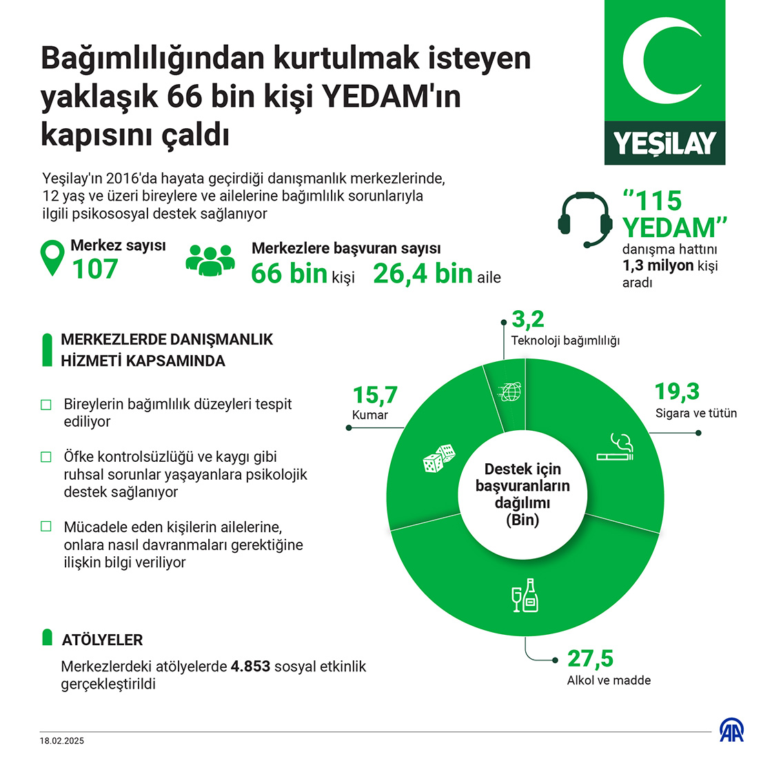 Bağımlılığından kurtulmak isteyen yaklaşık 66 bin kişi YEDAM'ın kapısını çaldı