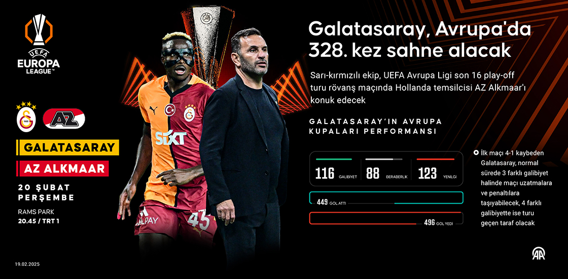 Sarı-kırmızılı ekip, UEFA Avrupa Ligi son 16 play-off turu rövanş maçında Hollanda temsilcisi AZ Alkmaar'ı konuk edecek. (Grafik: Efnan İpşir/AA)