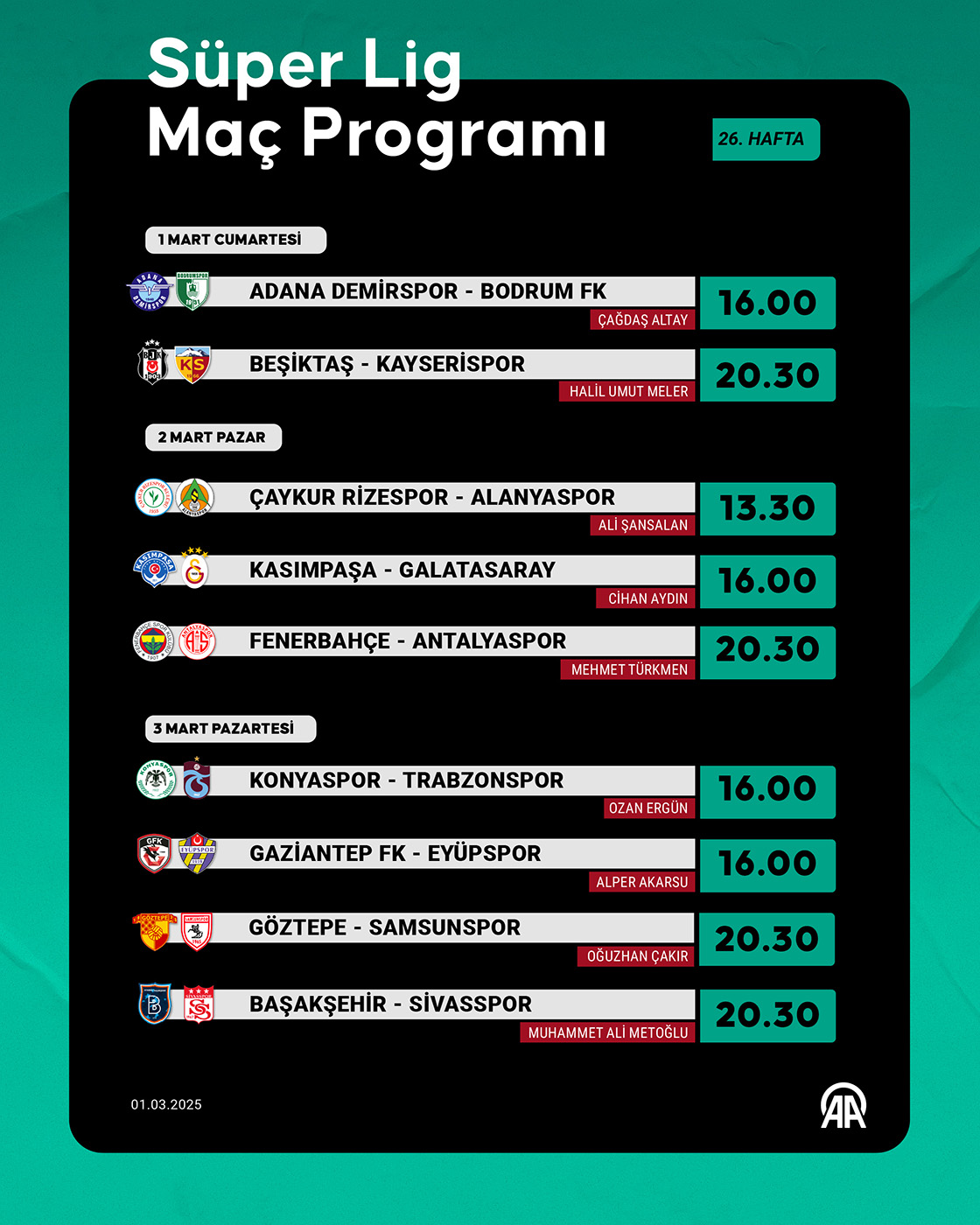 Trendyol Süper Lig'de 26. hafta iki maç ile başlayacak. (Grafik: Kemal Delikmen/AA)