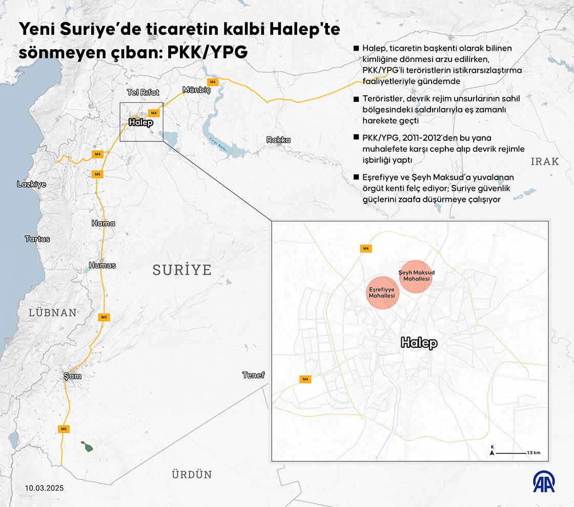 Suriye ordusu, Halep kent merkezinde terör örgütü PKK/YPG'nin saldırısını püskürttü. (Grafik: Omar Zaghloul/AA)