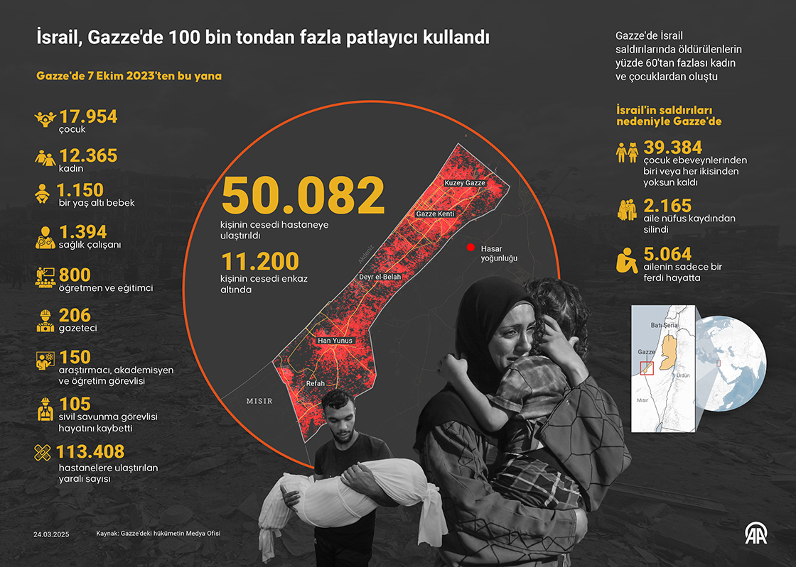 İsrail, Gazze'de 7 Ekim'den beri 100 bin tondan fazla patlayıcı kullandı