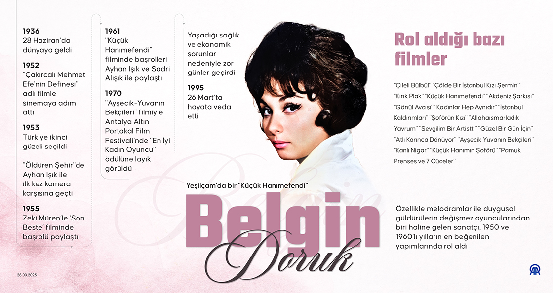 Özellikle melodramlar ile duygusal güldürülerin değişmez oyuncularından biri haline gelen sanatçı, 1950 ve 1960'lı yılların en beğenilen yapımlarında rol aldı. (Grafik: Efnan İpşir/AA)