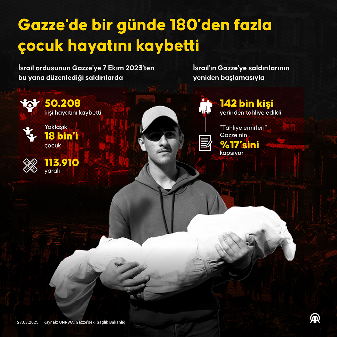 Gazze'de bir günde 180'den fazla çocuk hayatını kaybetti. (Grafik: Bedirhan Demirel/AA)