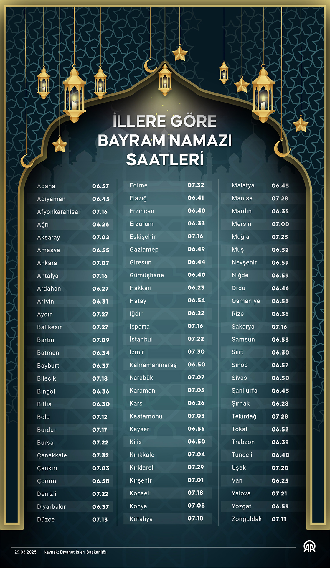 İllere göre bayram namazı saatleri. (Grafik: Ufuk Celal Güzel/AA)