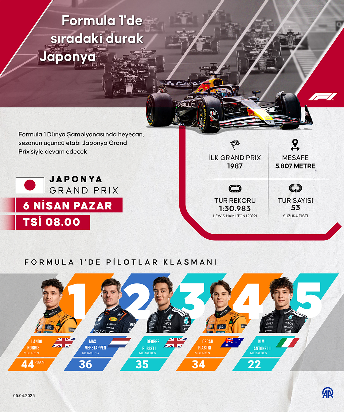 Formula 1 Dünya Şampiyonası'nda heyecan, sezonun üçüncü etabı Japonya Grand Prix'siyle devam edecek (Grafik: Ufuk Celal Güzel/AA)