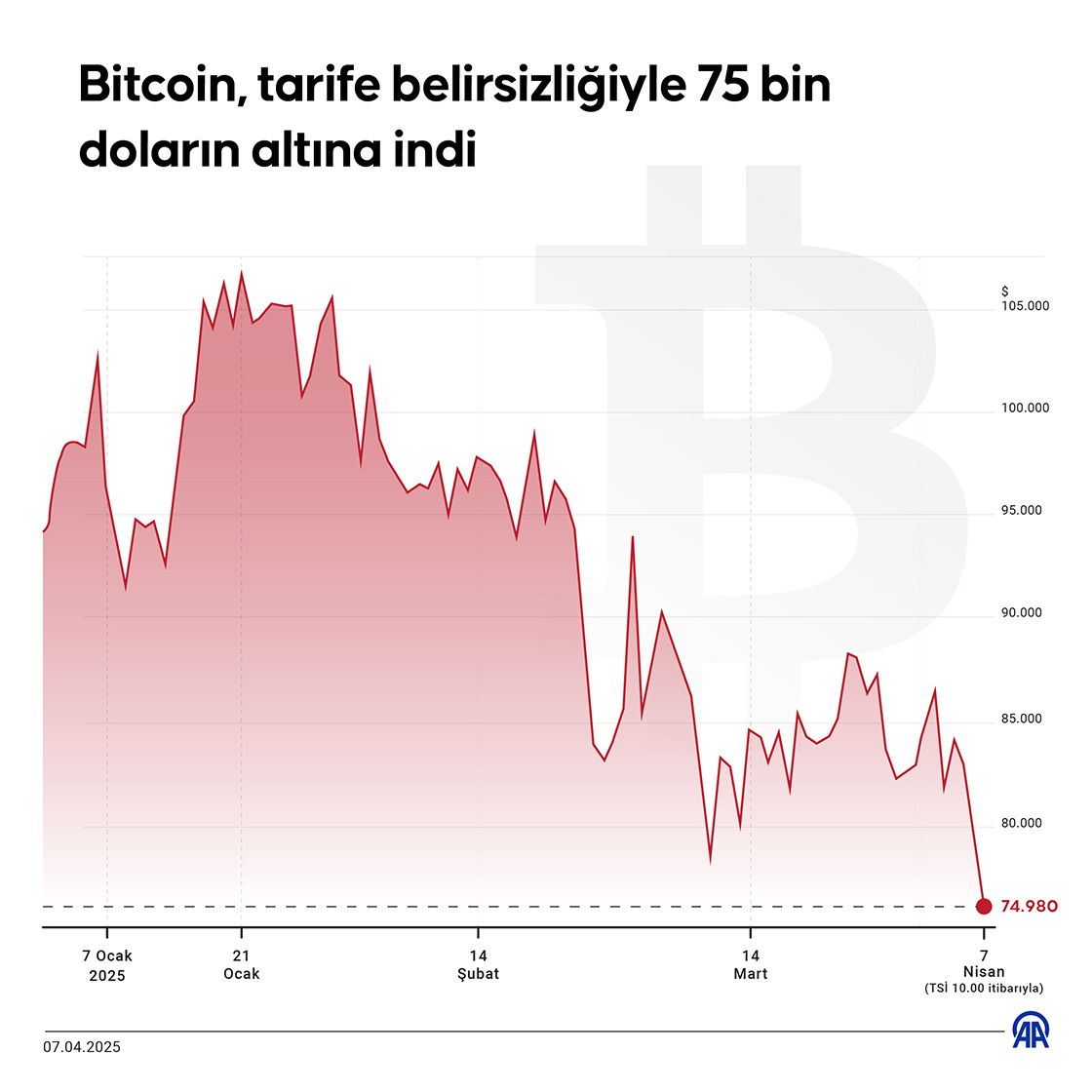 Bitcoin tarife belirsizliğiyle 75 bin doların altına indi