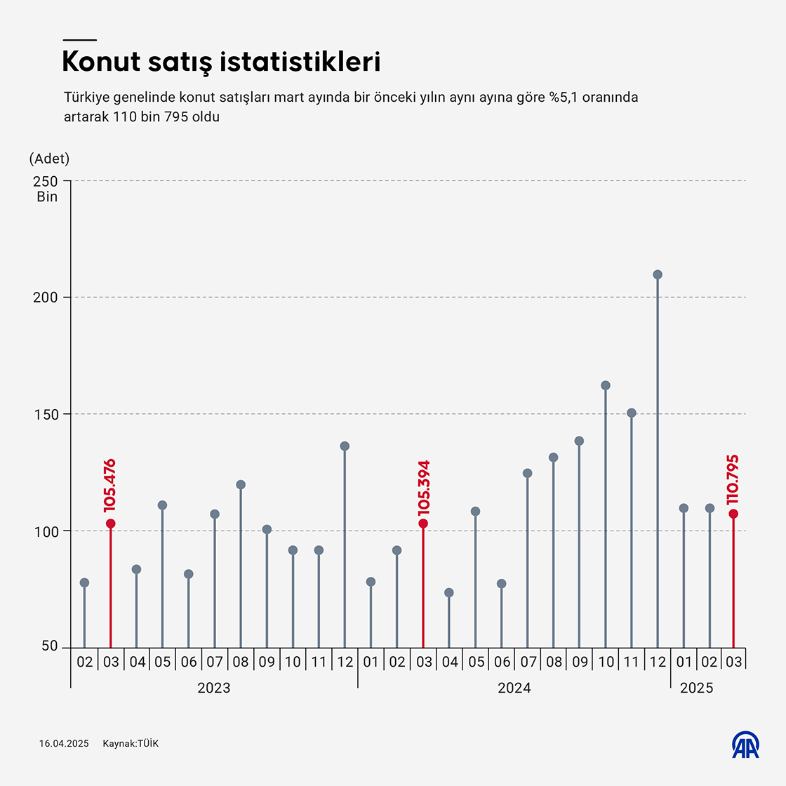 Türkiye genelinde konut satış sayısı, martta geçen yılın aynı ayına göre yüzde 5,1 artarak 110 bin 795 oldu. (Grafik: Efnan İpşir/AA)