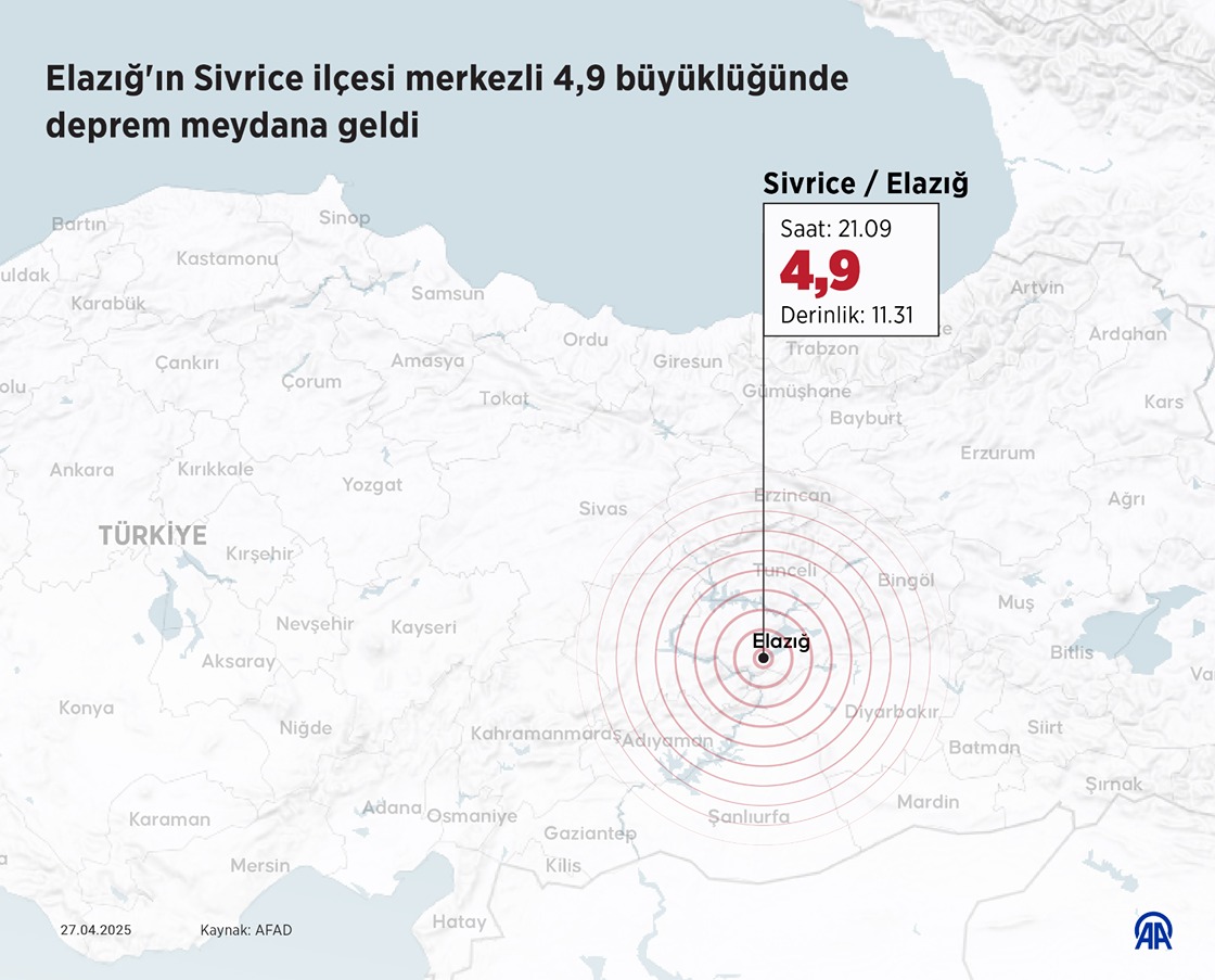 Elazığ'ın Sivrice ilçesi merkezli 4,9 büyüklüğünde deprem meydana geldi. (Grafik: Ufuk Celal Güzel/AA)