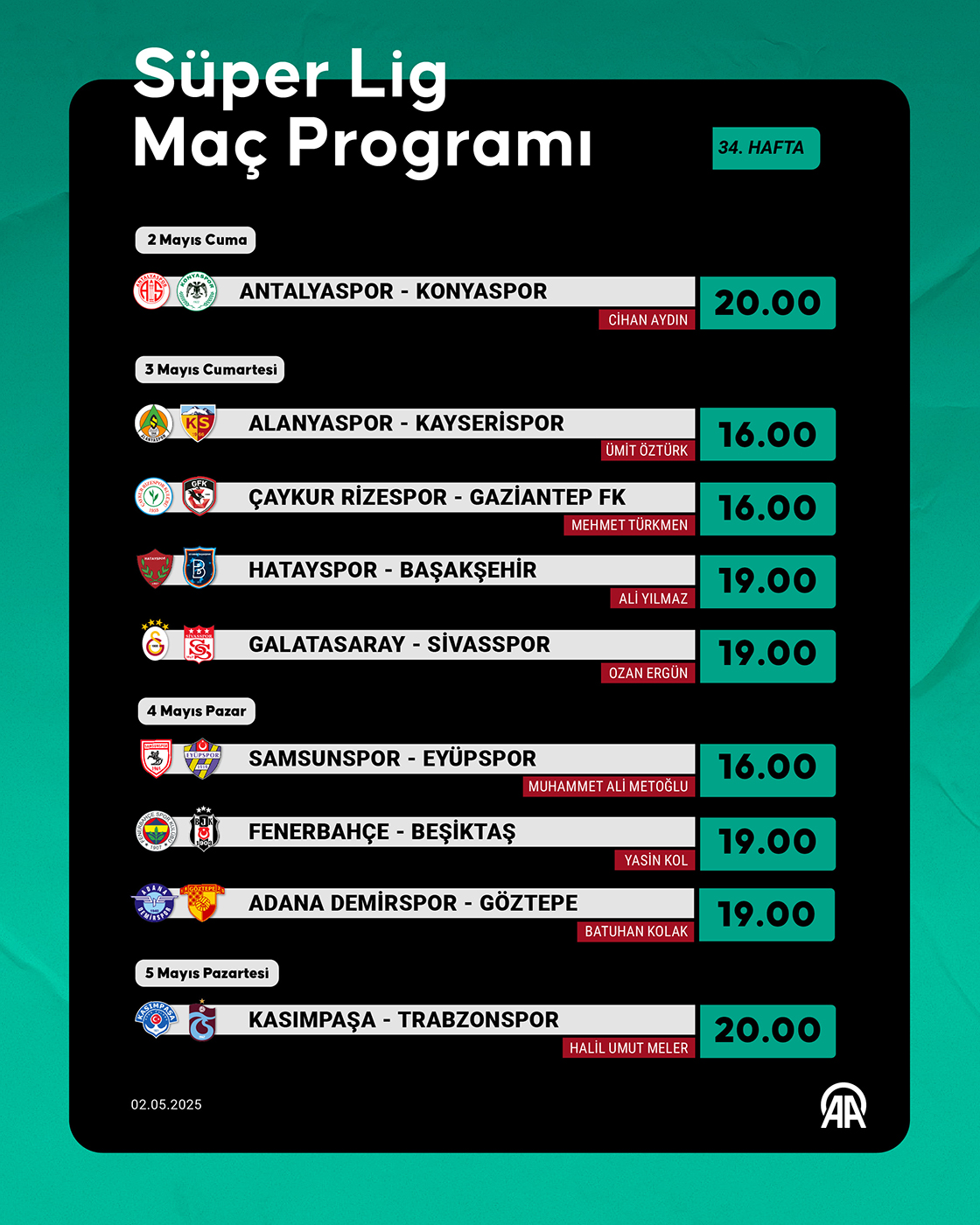Trendyol Süper Lig'de 34. hafta Antalyaspor ile Konyaspor arasında oynanacak maç ile başlayacak. (Grafik: Elif Acar/AA)