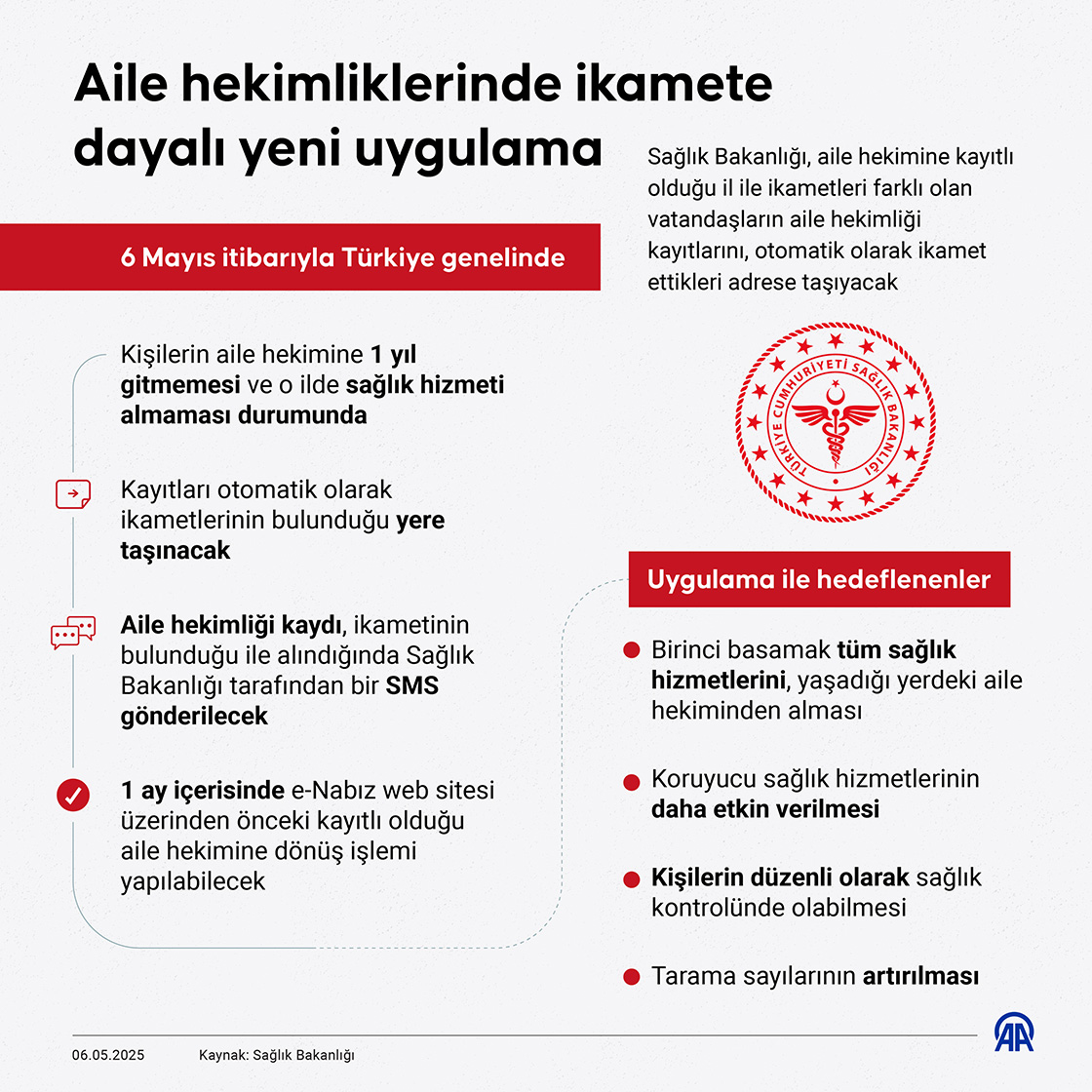 Sağlık Bakanlığı, aile hekimine kayıtlı olduğu il ile ikametleri farklı olan vatandaşların aile hekimliği kayıtlarını, otomatik olarak ikamet ettikleri adrese taşıyacak. (Grafik: Bedirhan Demire/AA)