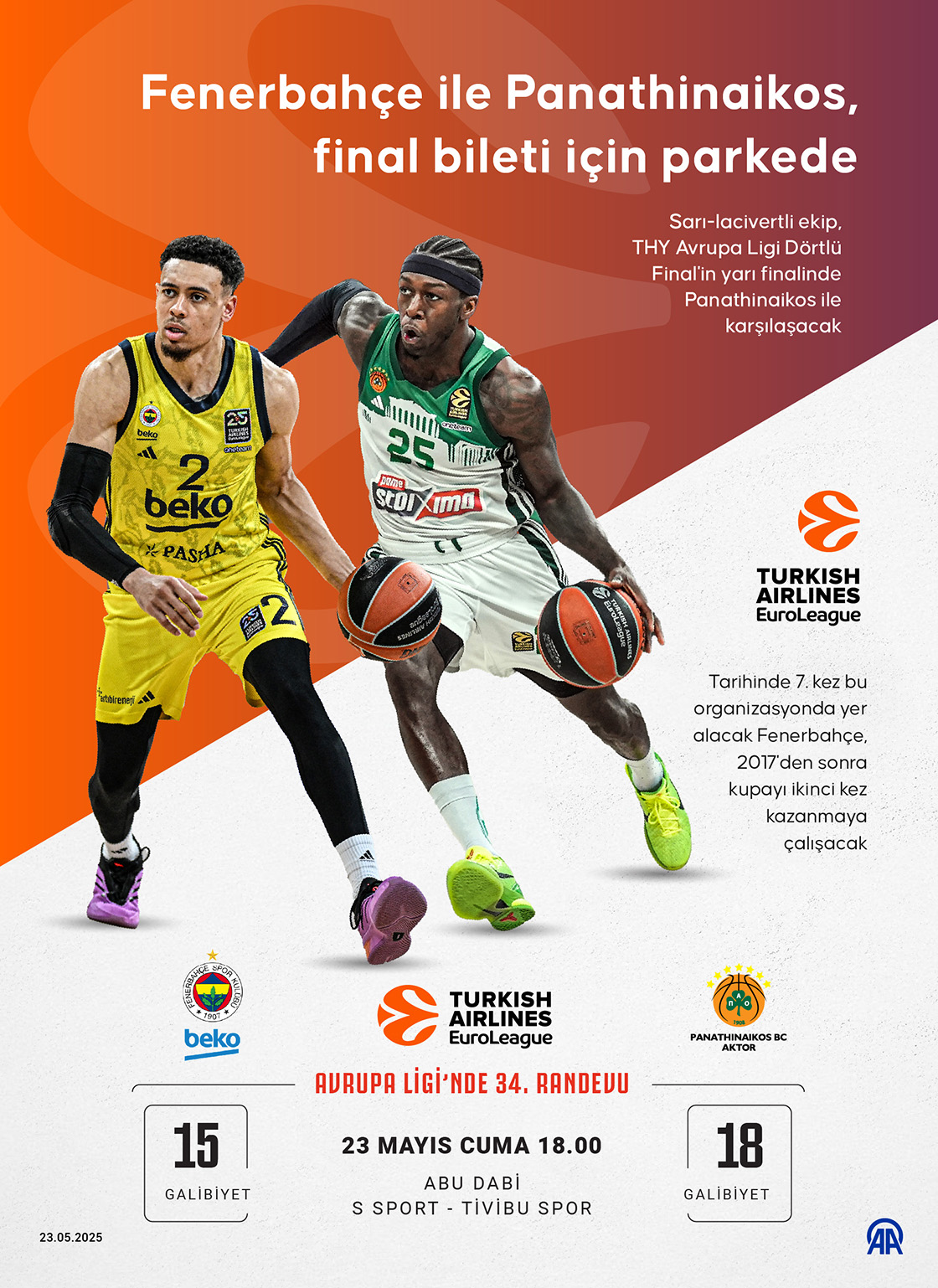 Sarı-lacivertli ekip, THY Avrupa Ligi Dörtlü Final'in yarı finalinde Panathinaikos ile karşılaşacak. (Grafik: Kemal Delikmen/AA)