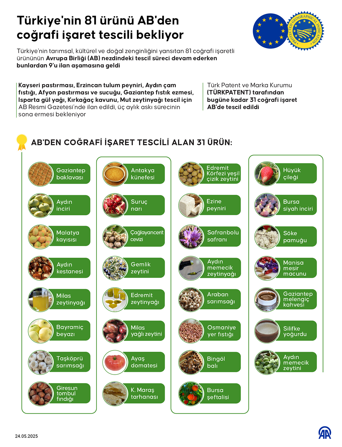 Türkiye'nin 81 ürünü AB'den coğrafi işaret tescili bekliyor