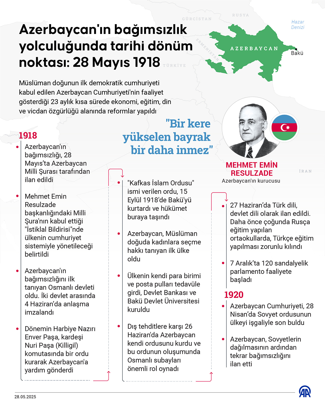 Azerbaycan'ın bağımsızlık yolculuğunda tarihi dönüm noktası: 28 Mayıs 1918