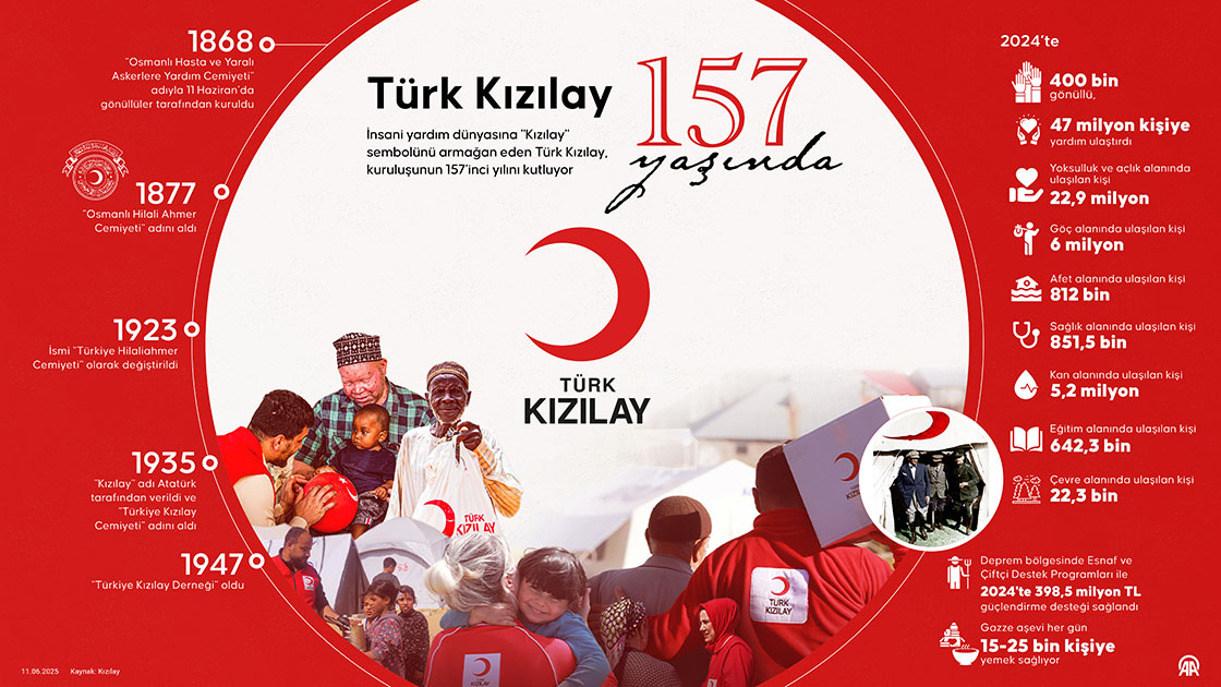 Gönüllülerin ve bağışçıların desteğiyle büyüyen Türk Kızılay, kuruluşunun 157'nci yıl dönümünde Türkiye'nin en geniş kapsamlı iyilik hareketi olmaya devam ediyor. (Grafik: Ufuk Celal Güzel/AA)