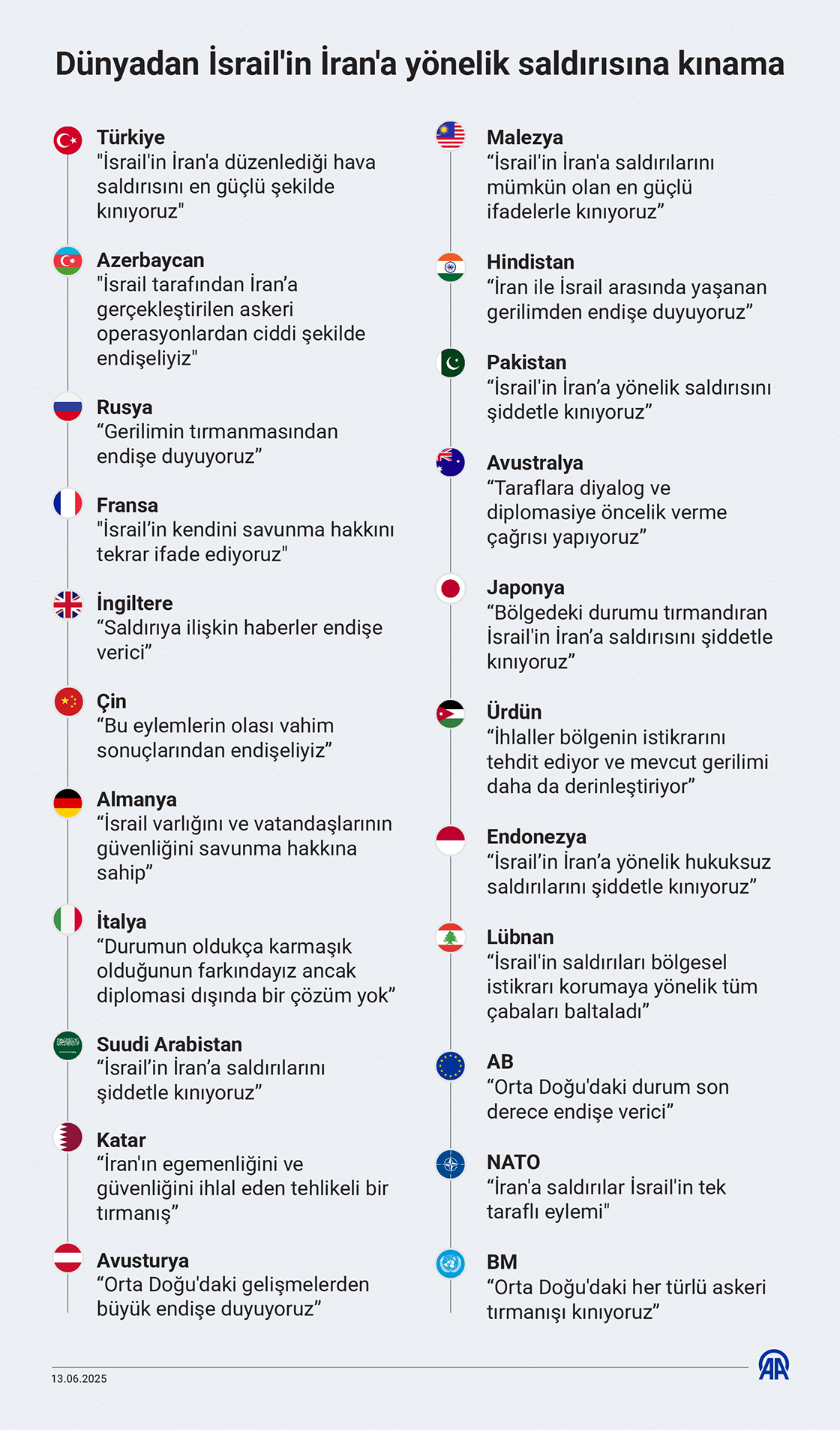 Dünyadan İsrail'in İran'a yönelik saldırısına kınama