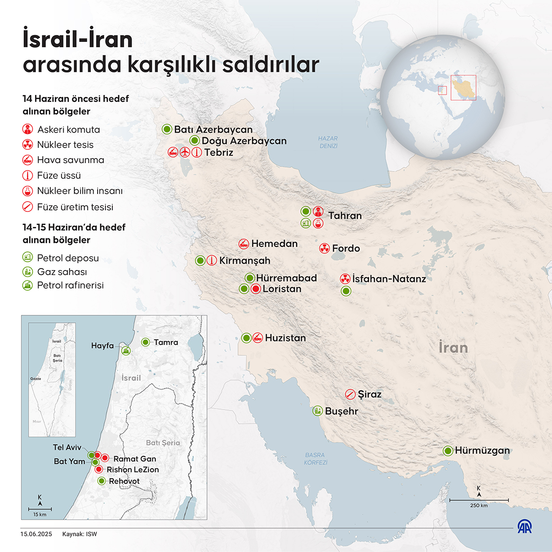 İsrail’in, İran'ın başkenti Tahran dahil birçok kente şiddetli saldırılar düzenlediği bildirilirken, İran'ın da İsrail'e yönelik yeni füze saldırıları gece boyunca devam etti. (Grafik: Omar Zaghloul/AA)