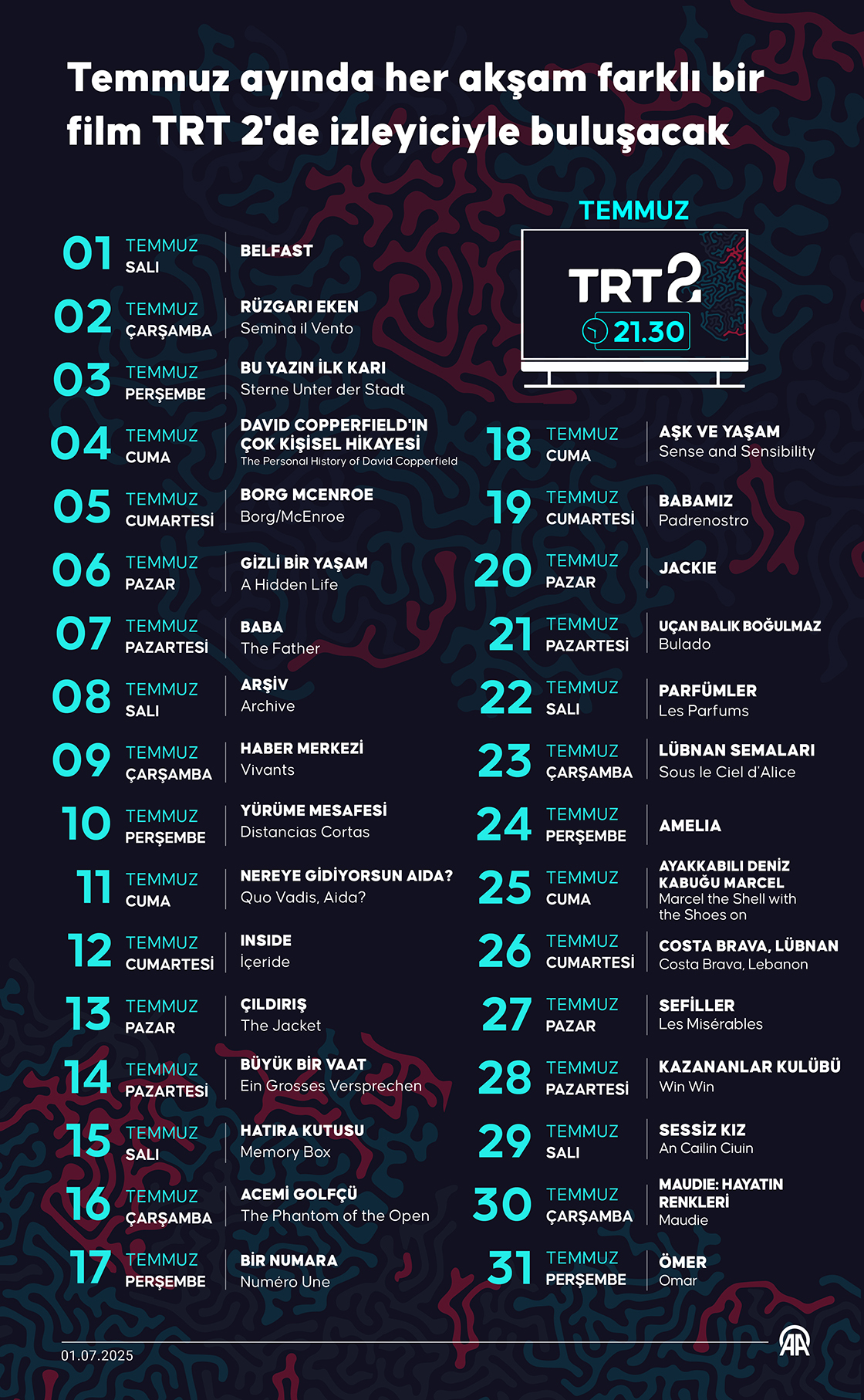 Temmuz ayında her akşam farklı bir film TRT 2'de izleyiciyle buluşacak