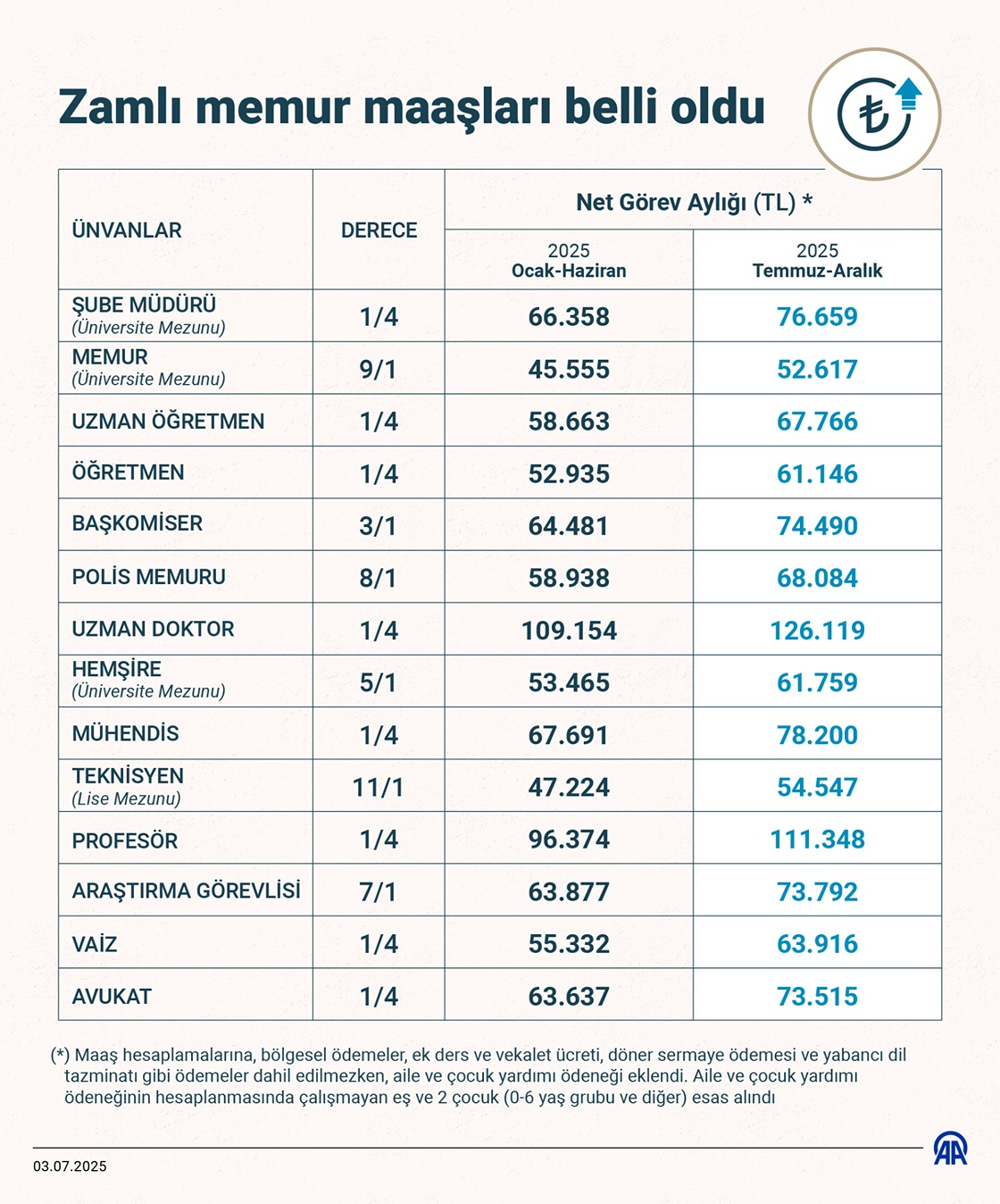 Memur ve memur emeklilerinin 2025 yılının ikinci 6 ayında alacağı zamlı maaşlar ile SSK ve Bağ-Kur emeklilerinin aylıklarındaki artış oranları belirlendi. (Grafik: Ufuk Celal Güzel/AA)
