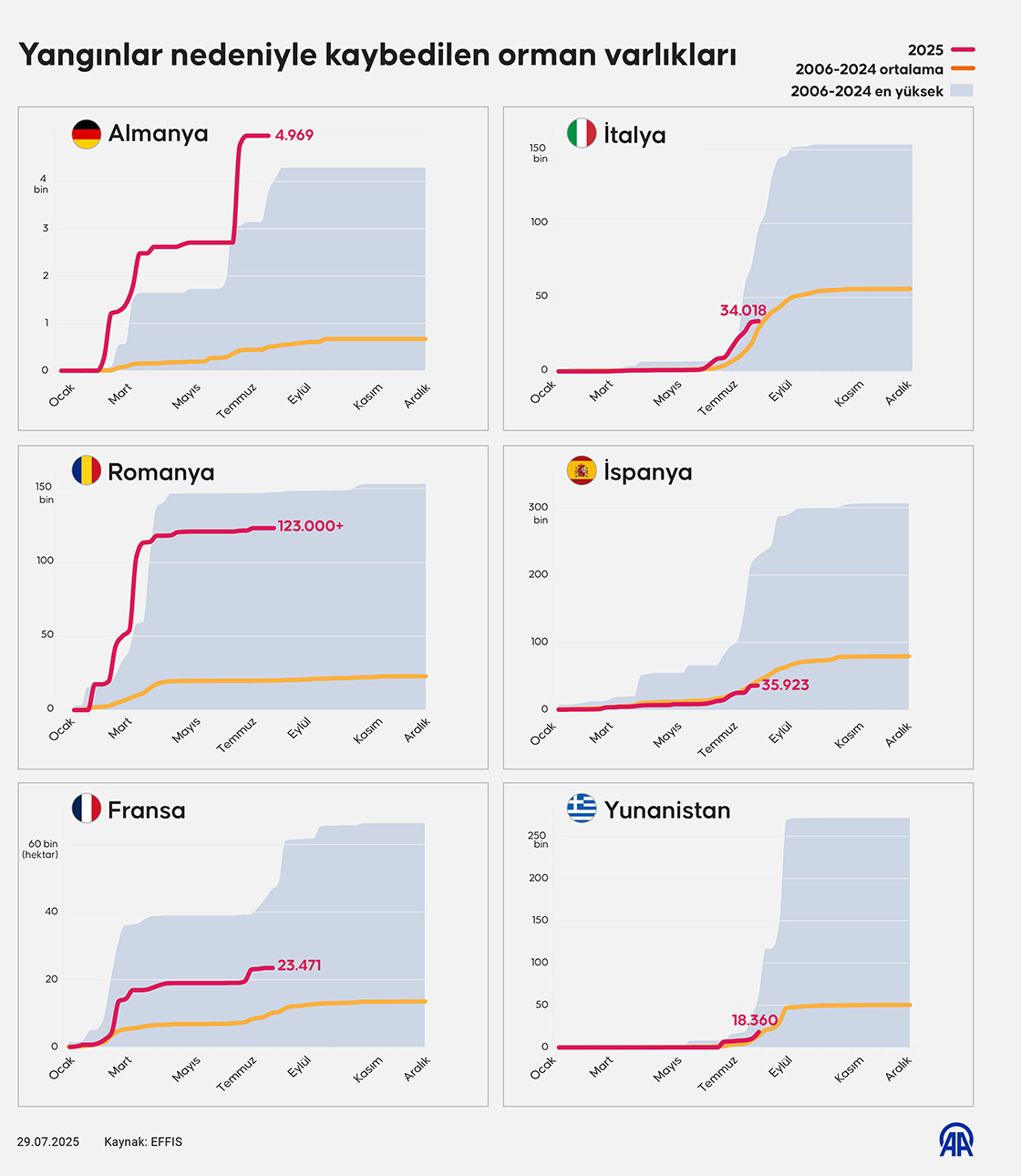 Dünyanın birçok bölgesinde etkili olan, küresel ısınmanın da tetiklediği yangınlar giderek daha fazla ormanlık alan kaybına yol açıyor. (Grafik: Bedirhan Demirel/AA)