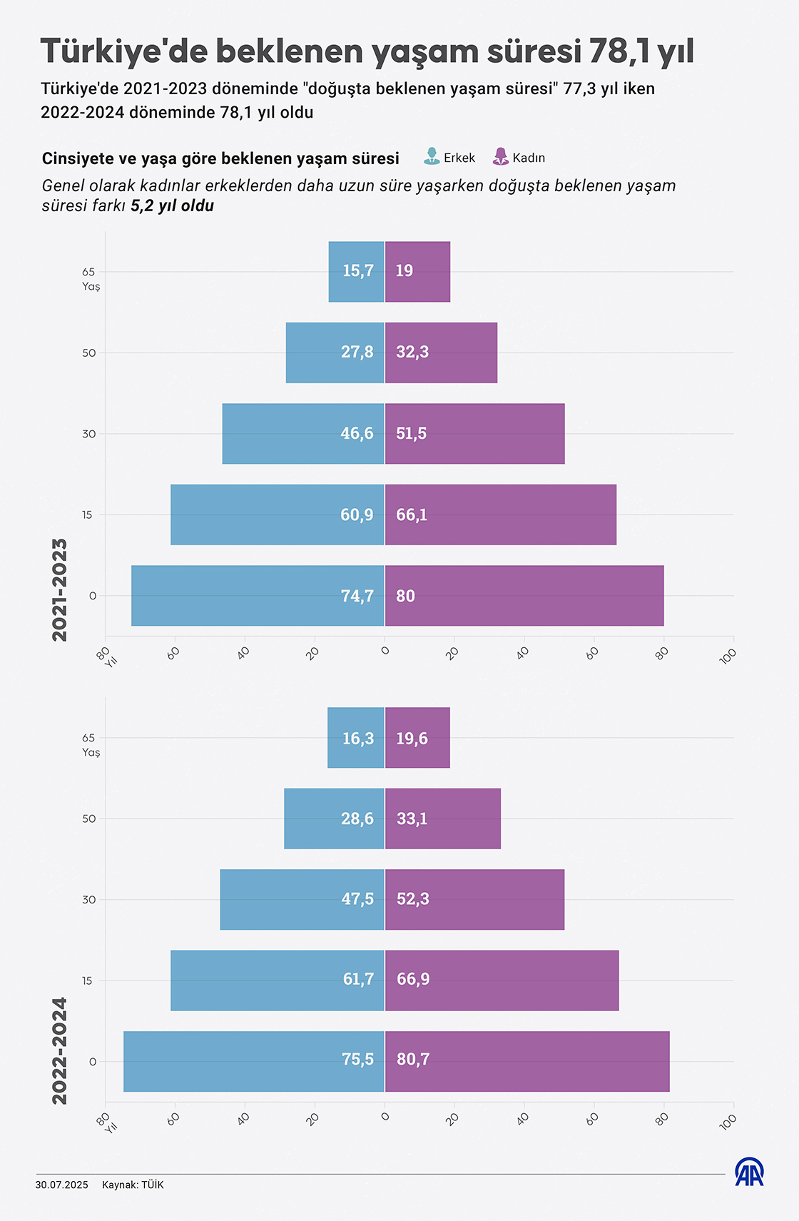 Türkiye'de beklenen yaşam süresi 78,1 yıl